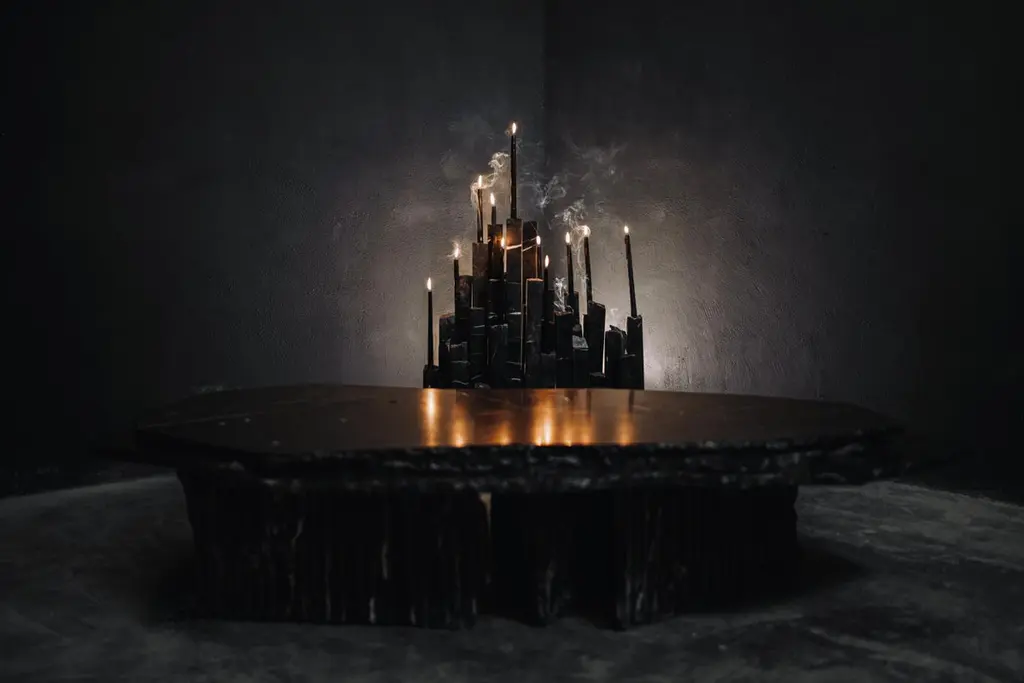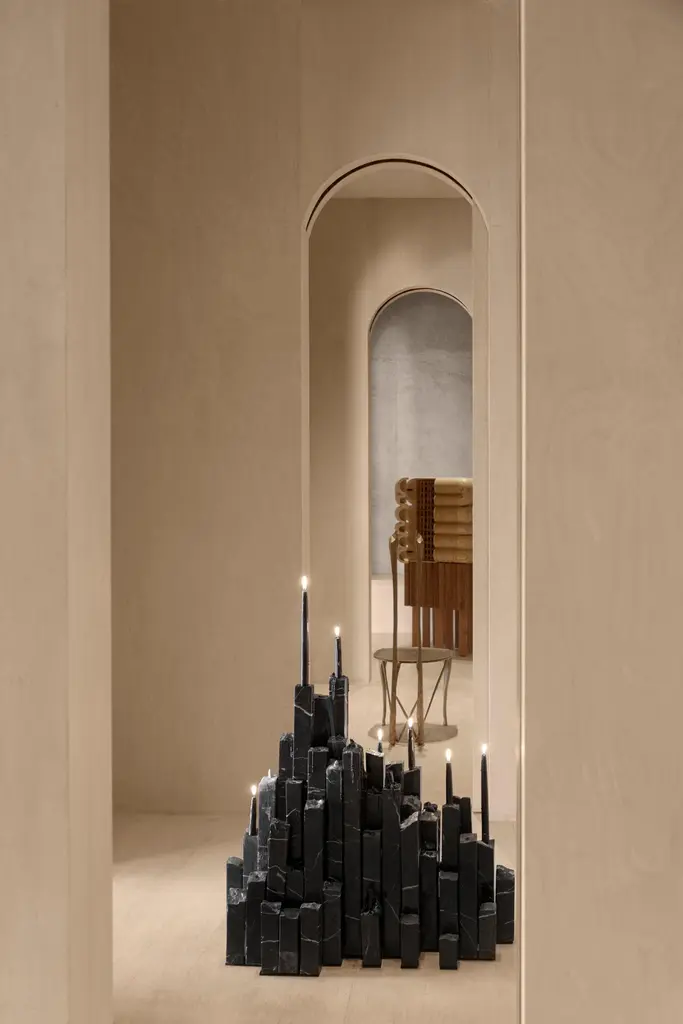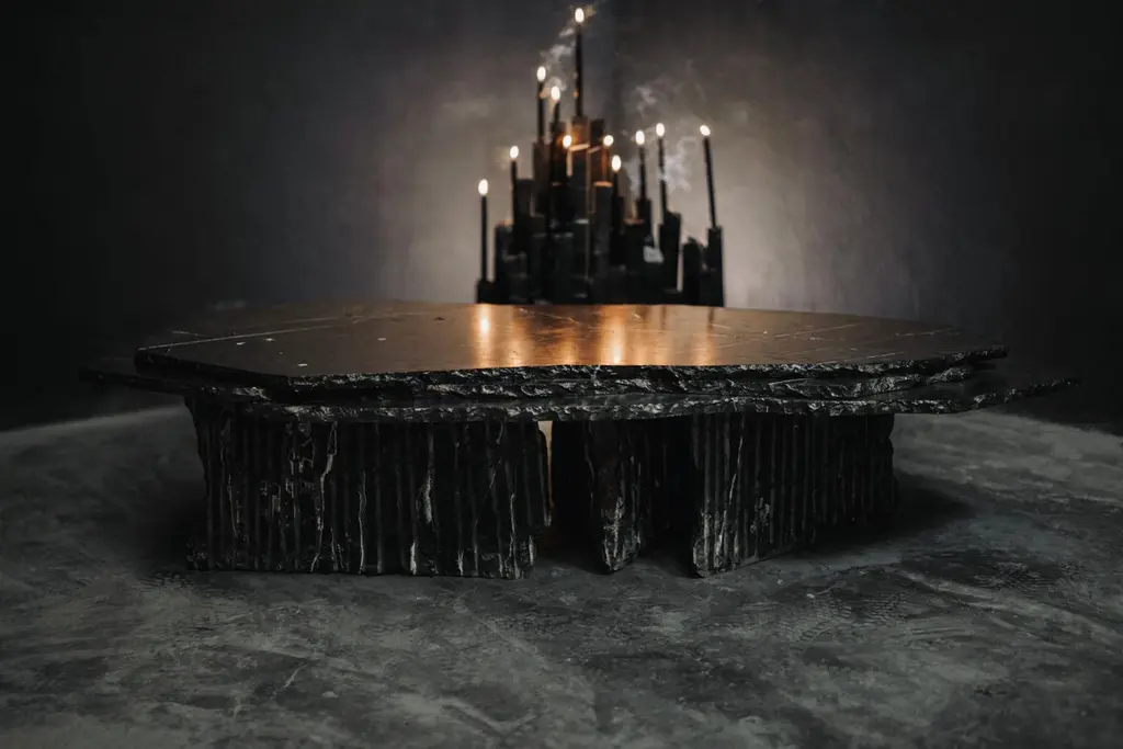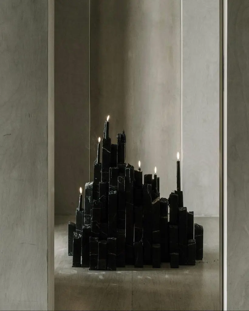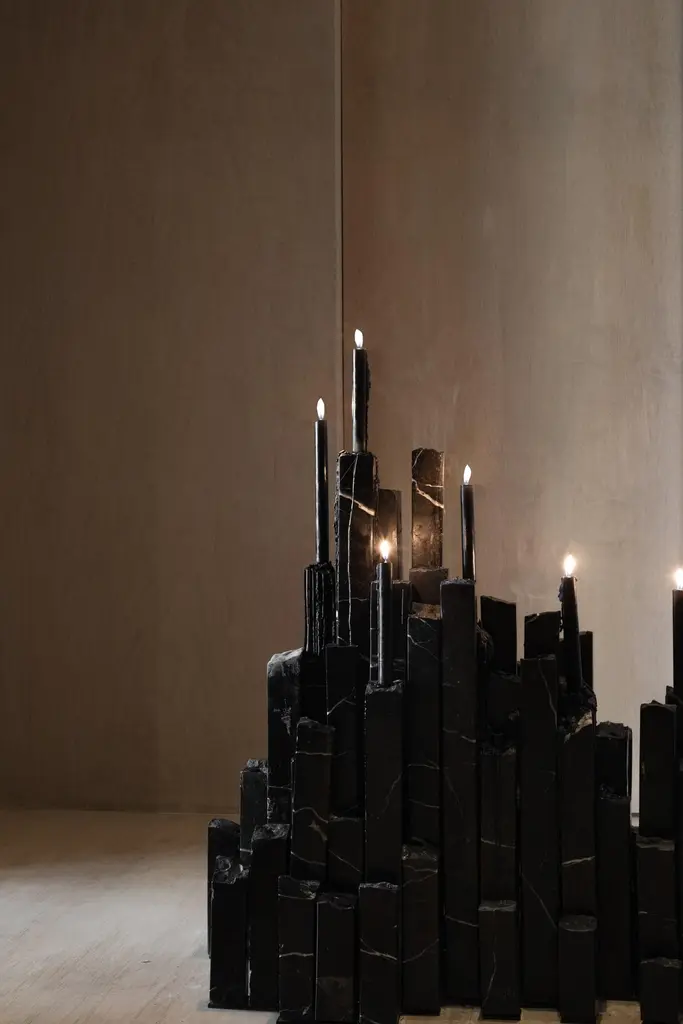 Varying Height Cluster Of Pillars Black Marble Candelabra By Andres Monnier