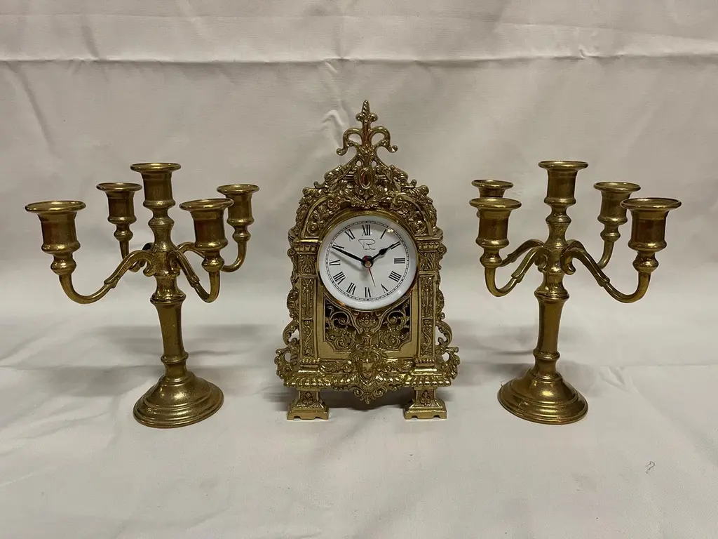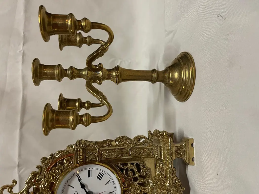 Vintage italy 1990s bronze 4 flame clock and candelabra