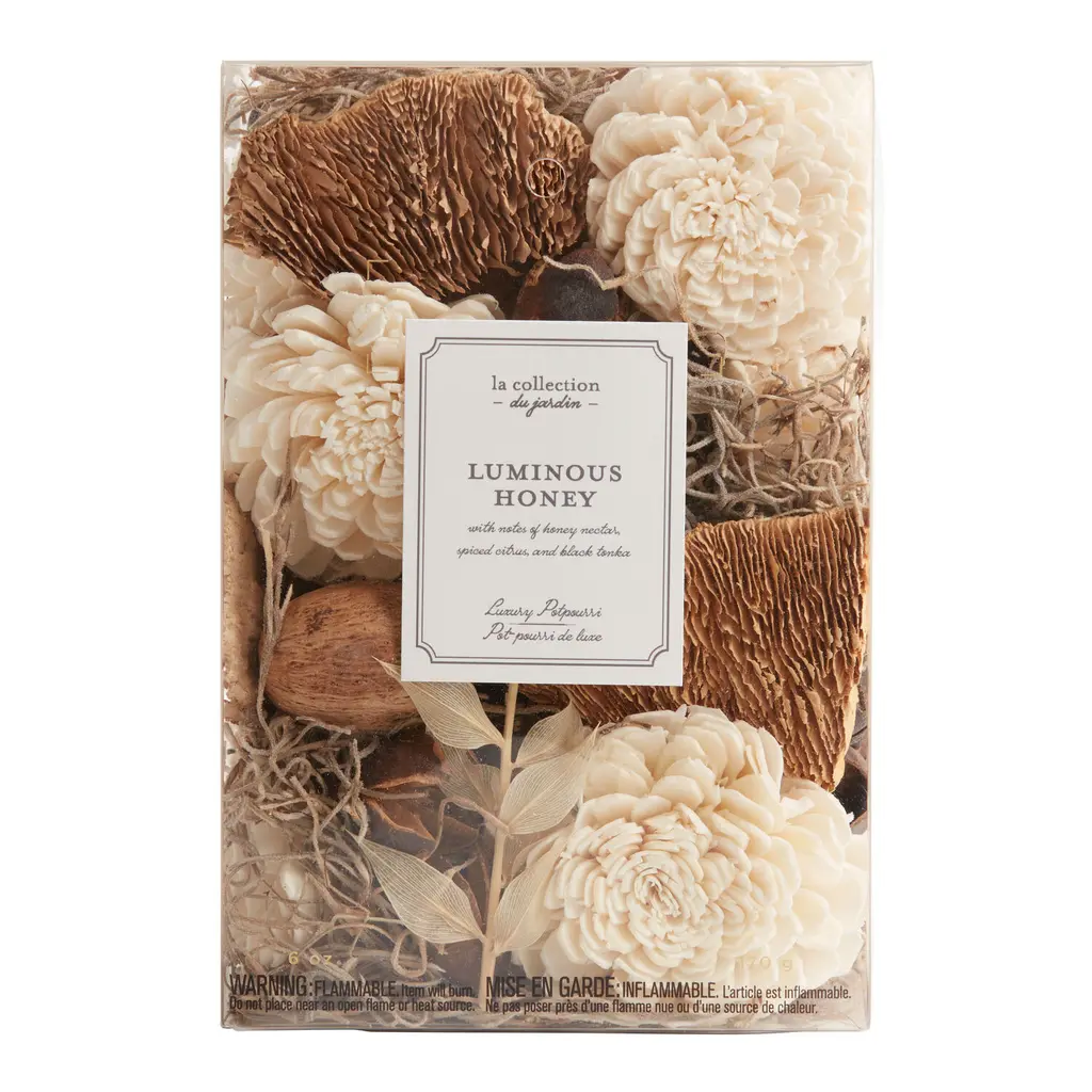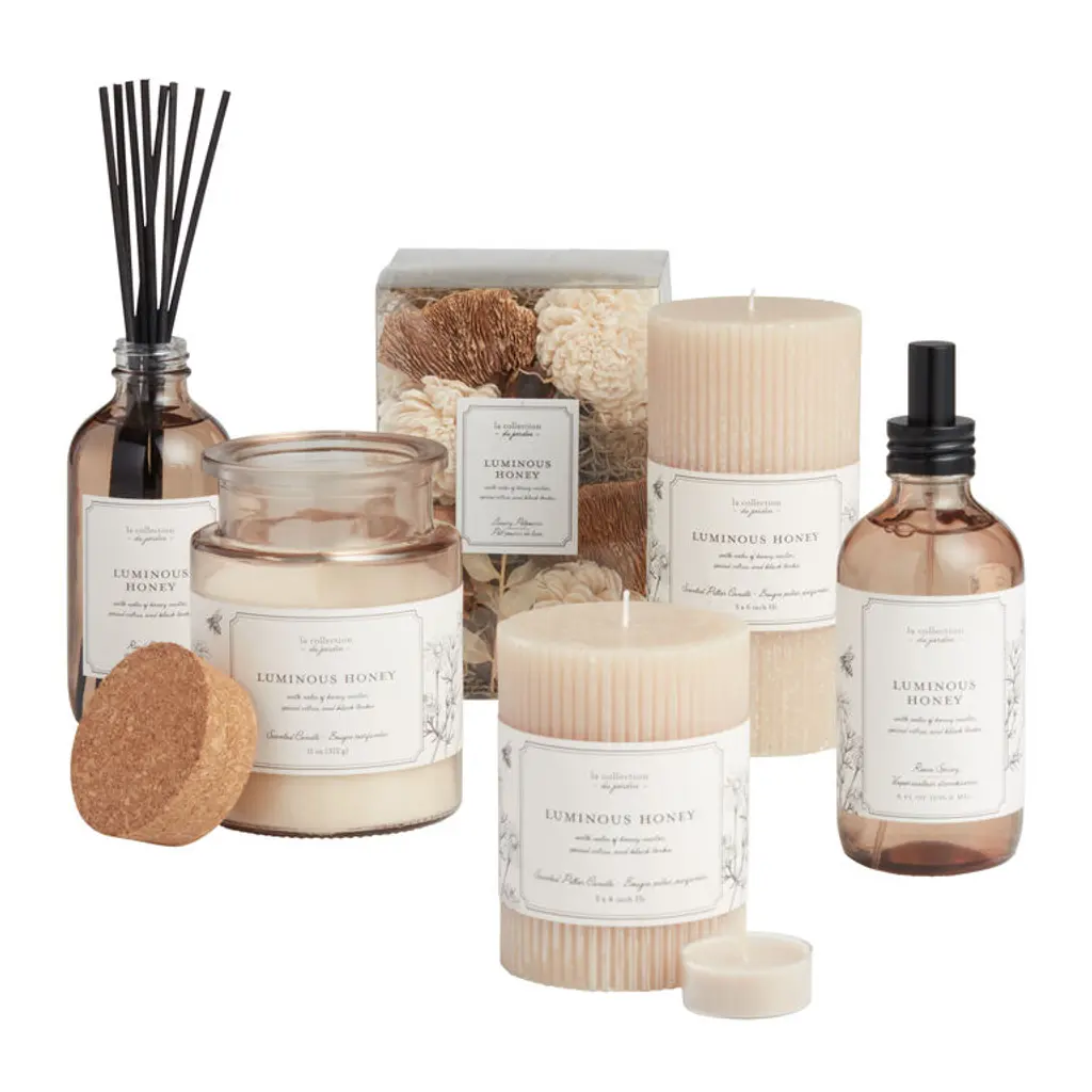 In pretty straw-yellow hues, and finished with decorative botanical labels, our Jardin Luminous Honey home fragrance range is perfect for gifting. Including candles, diffusers, potpourri and more, the line features our proprietary sweet-floral blend with an accord of freshly gathered honey nectar and essences of lily and orange blossom.