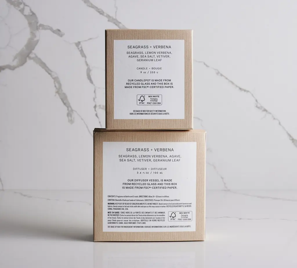 Whether you want a scent that stays year-round or prefer it to change with the seasons, our Signature Homescent Collection makes your house smell like home. Seagrass Verbena features refreshingly citrus notes of lemon verbena and vetiver that is balanced by clean notes of seagrass and sea salt. Available in plenty of options to infuse your favorite scent throughout your home.