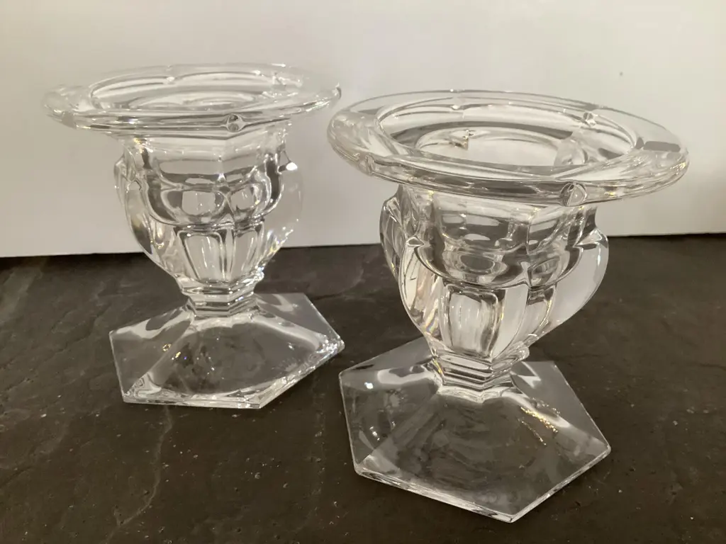 1990s Royal Doulton Concord Crystal Candle Holders For Tapers Or Pillars- A Pair