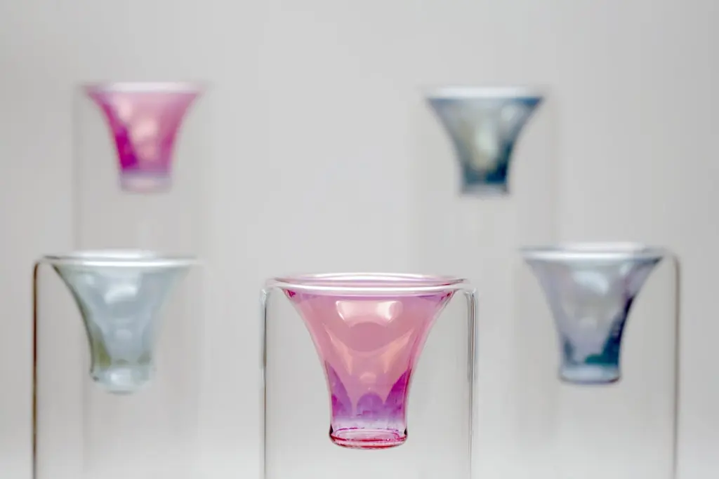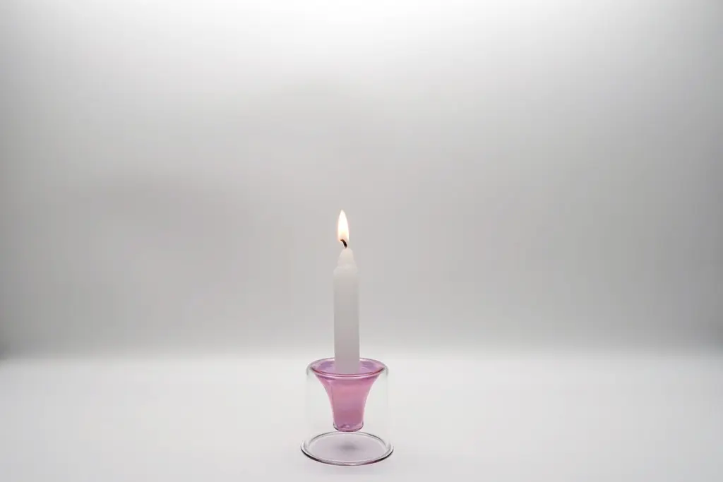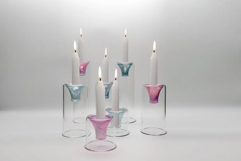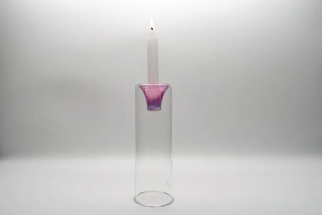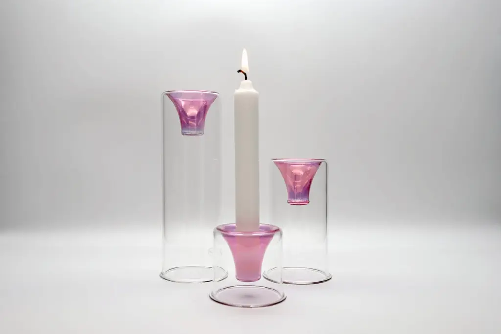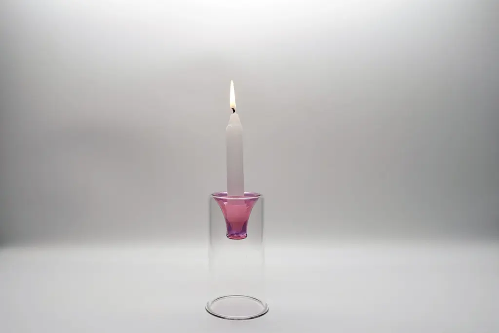21st Century Hand-Crafted Glass Candlesticks, Pink Color, Kanz Architetti