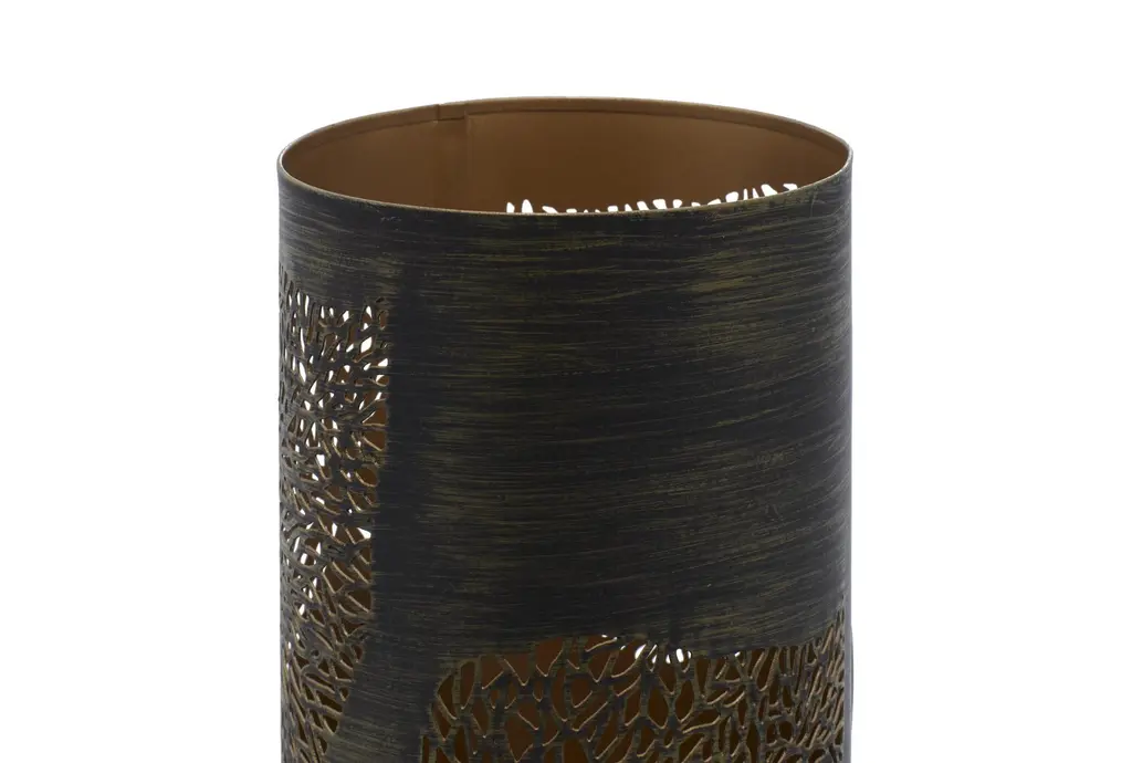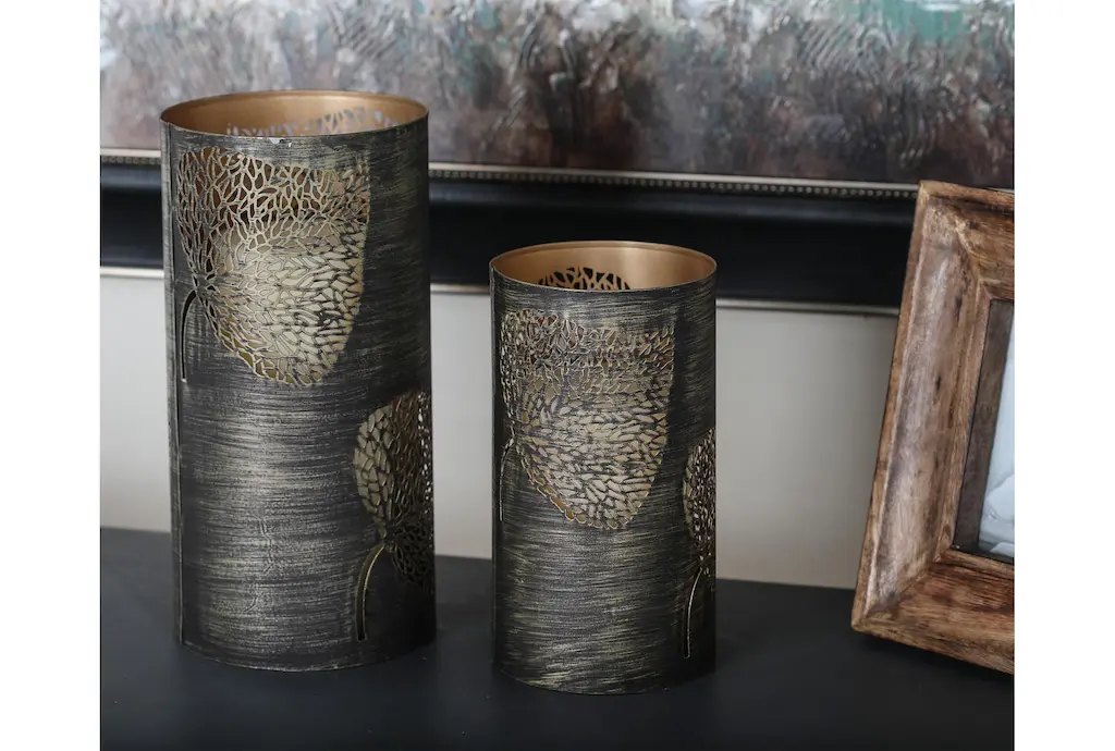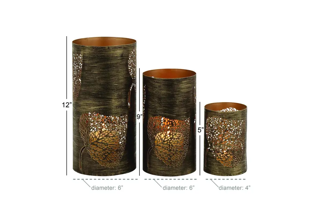 Delight your guests and make any occasion extra special by adding a lighted or flameless candle to this lantern. Made with a sturdy base, it is perfect for creating an elegant atmosphere at your table top or mantel. Add instant warmth and inviting ambiance to your home with these brown metal candle holders that are great addition to eclectic interior. Designed with felt or rubber stoppers at the base that prevent scratching furniture and table tops, as well as sliding around. Can hold 3 pillar candles, not included. This item ships in 1 carton. Please note that this item is for decorative use only. Suitable for indoor use only. This item ships fully assembled in one piece. Made in India. This copper colored lantern candle holder comes as a set of 3. Eclectic style.