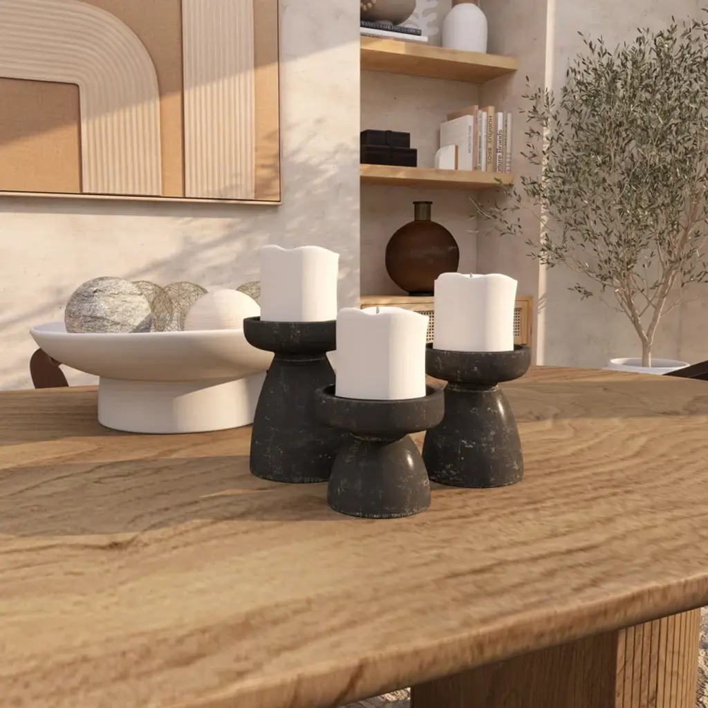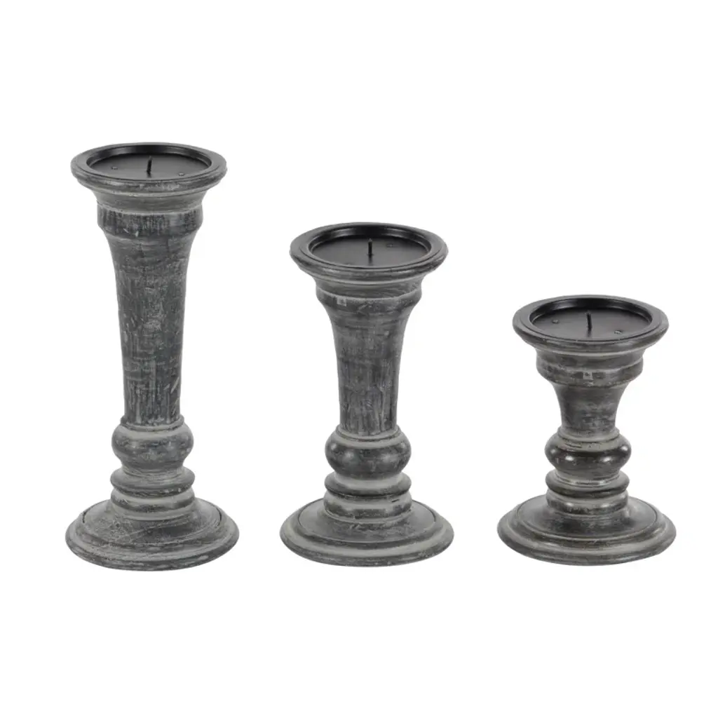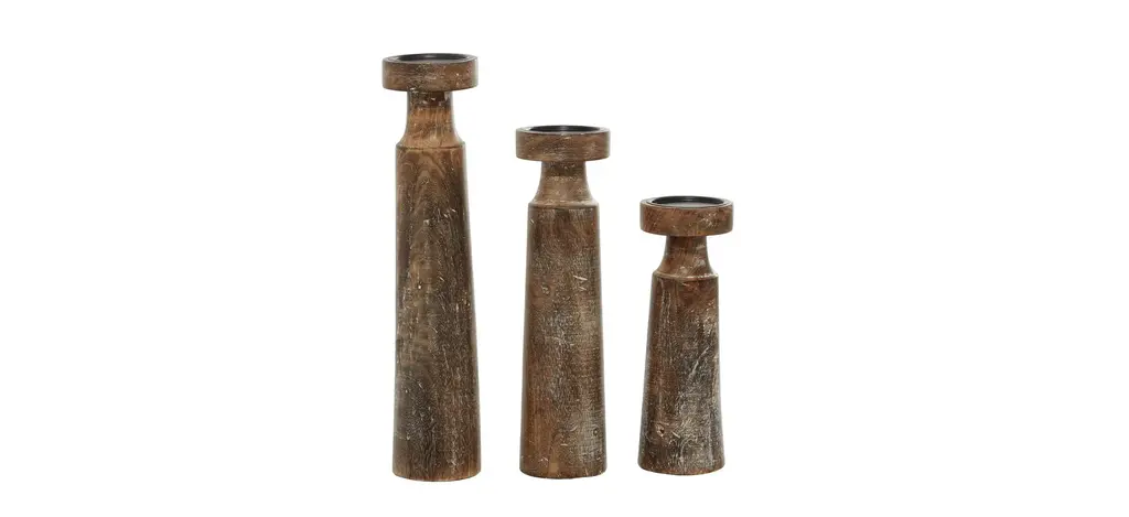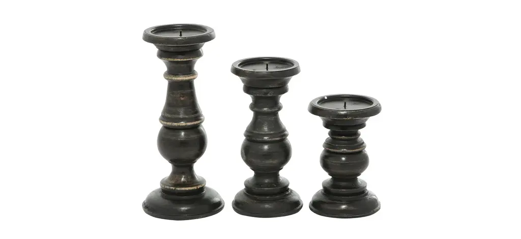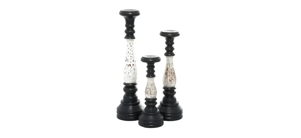 Give your space a radiant illumination with these beautifully crafted candle holders. Made with a sturdy base, it is perfect for creating an elegant atmosphere on your tabletop or mantel. Versatile white wooden candle holders provide a great display in your home for a warm and comforting atmosphere in any space. Designed with felt or rubber stoppers at the base that prevent scratching furniture and table tops, as well as sliding around. Can hold 3 pillar candles, not included. This item ships in 1 carton. Wood candle holder makes a great gift for any occasion. Suitable for indoor use only. This item ships fully assembled in one piece. This white-colored candle stand comes as a set of 3. Traditional style.