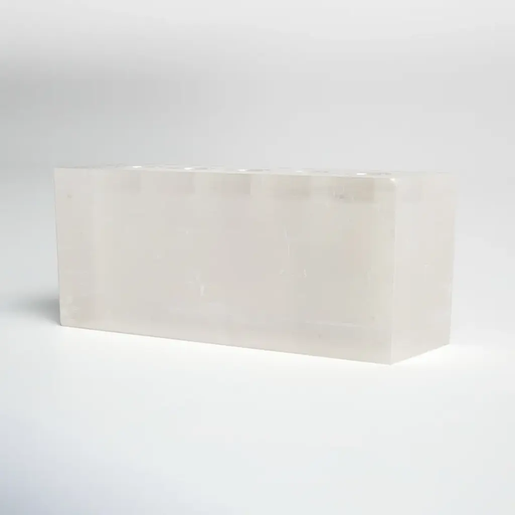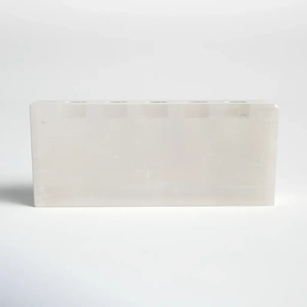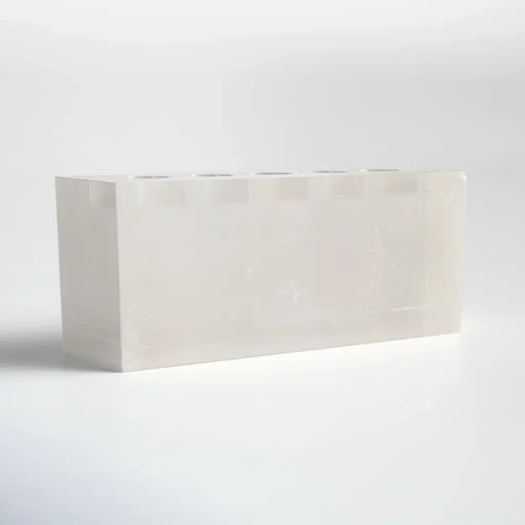Illuminate your space with a touch of elegance. Handcrafted from selenite, this votive holder radiates a soothing, ethereal glow when lit. Its clean lines and translucent aesthetic harmonize with any decor, transforming ordinary moments into magical experiences. Perfect for creating a calming ambiance for your evening unwind. Plus, it's designed to hold one votive or tealight candle, making it a versatile addition to your home.