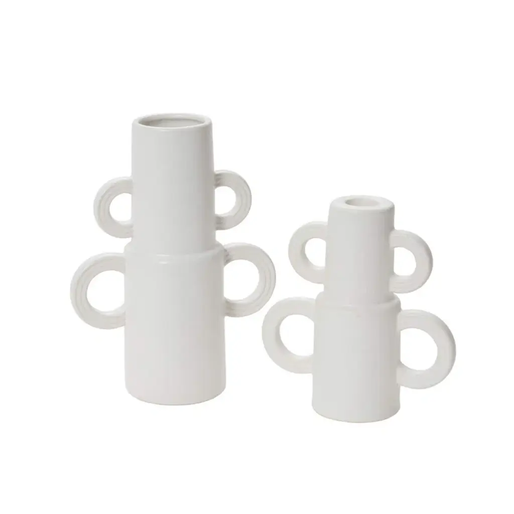 Designed to perfectly hold a standard taper candle, the Slateford Candleholder features unique loops on either side and a smooth white finish.