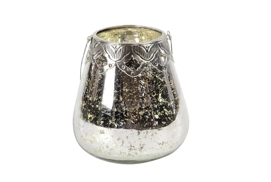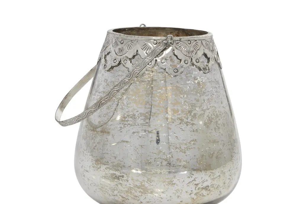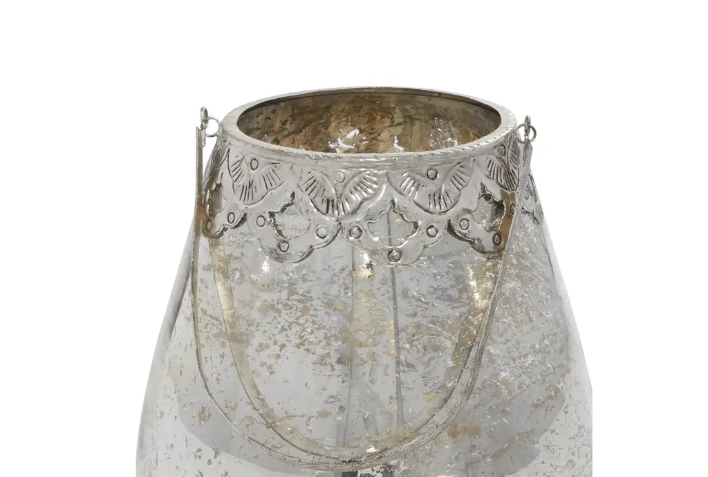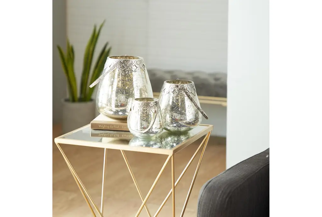 Delight your guests and make any occasion extra special by adding a lighted or flameless candle to this candle holder centerpiece. Made with a sturdy base, it is perfect for creating an elegant atmosphere at your table top or mantel. A festive set of glass candle holders for both light & dark-tones spaces that attract natural light. Designed with felt or rubber stoppers at the base that prevent scratching furniture and table tops, as well as sliding around. Can hold 3 pillar candles, not included. This item ships in 1 carton. Please note that this item is for decorative use only. Glass candle lantern makes a great gift for any occasion. Suitable for indoor use only. This item ships fully assembled in one piece. Made in India. This silver colored lantern candle holder comes as a set of 3. Glam style.