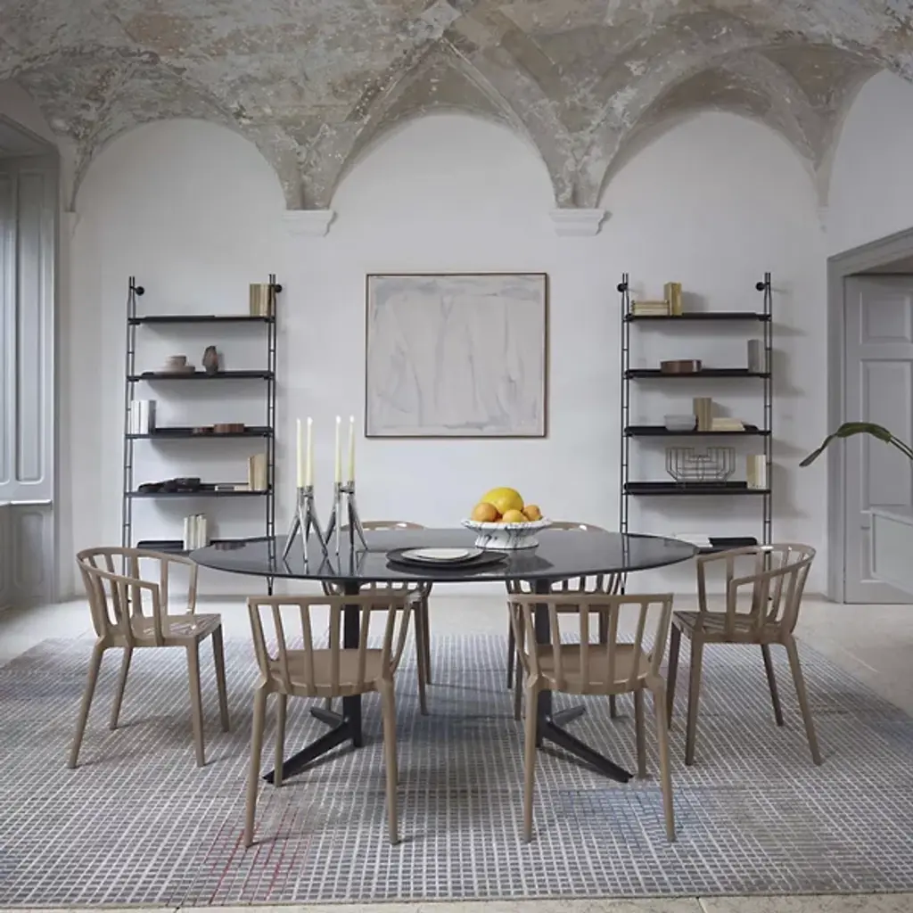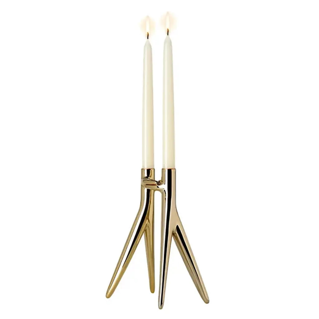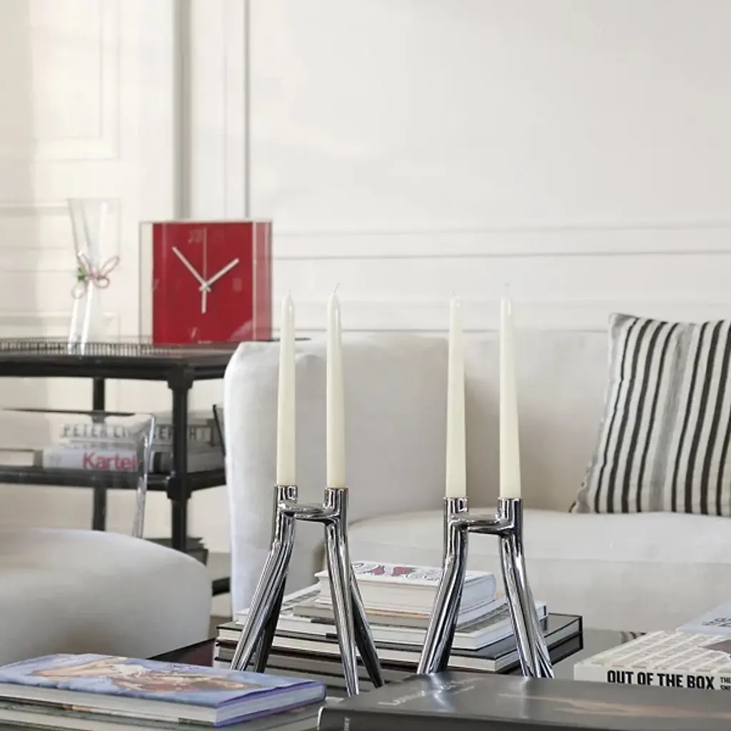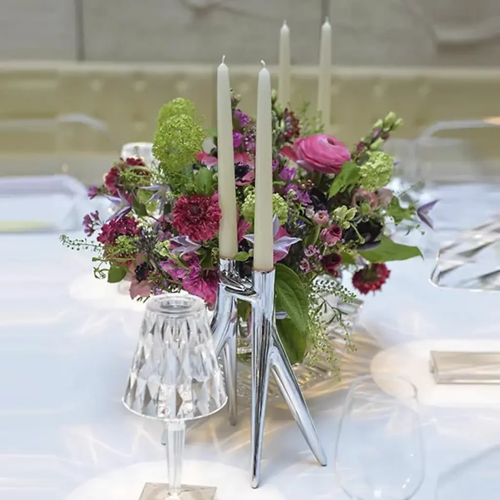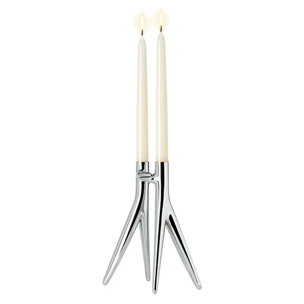 The Abbracciaio Candleholder from Kartell tells a story of connection through its coupled form. This aluminum piece, designed by Philippe Starck with Ambroise Maggiar, consists of two separate parts that join together in what appears as an embrace—hence its name, which suggests a hug or embrace in Italian. The candleholder gains its stability from this very connection, with each component supporting the other when placed together. This piece’s minimalist yet expressive design offers a fresh interpretation of the traditional candelabra while providing a stable platform for candles.