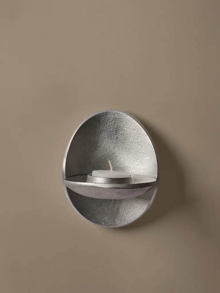 Indulge in the luxurious allure of the Agapé Wall Candle Holder from Ferm Living. Made from recycled cast aluminum and named after the Greek word for 'spiritual love and charity,' this set of two adds warmth and beauty to any space. The rustic surface creates a mesmerizing ambience while its versatile design allows for tea lights or 0.9 inch candlesticks. Elevate your surroundings with this elegant and functional piece. Highlights