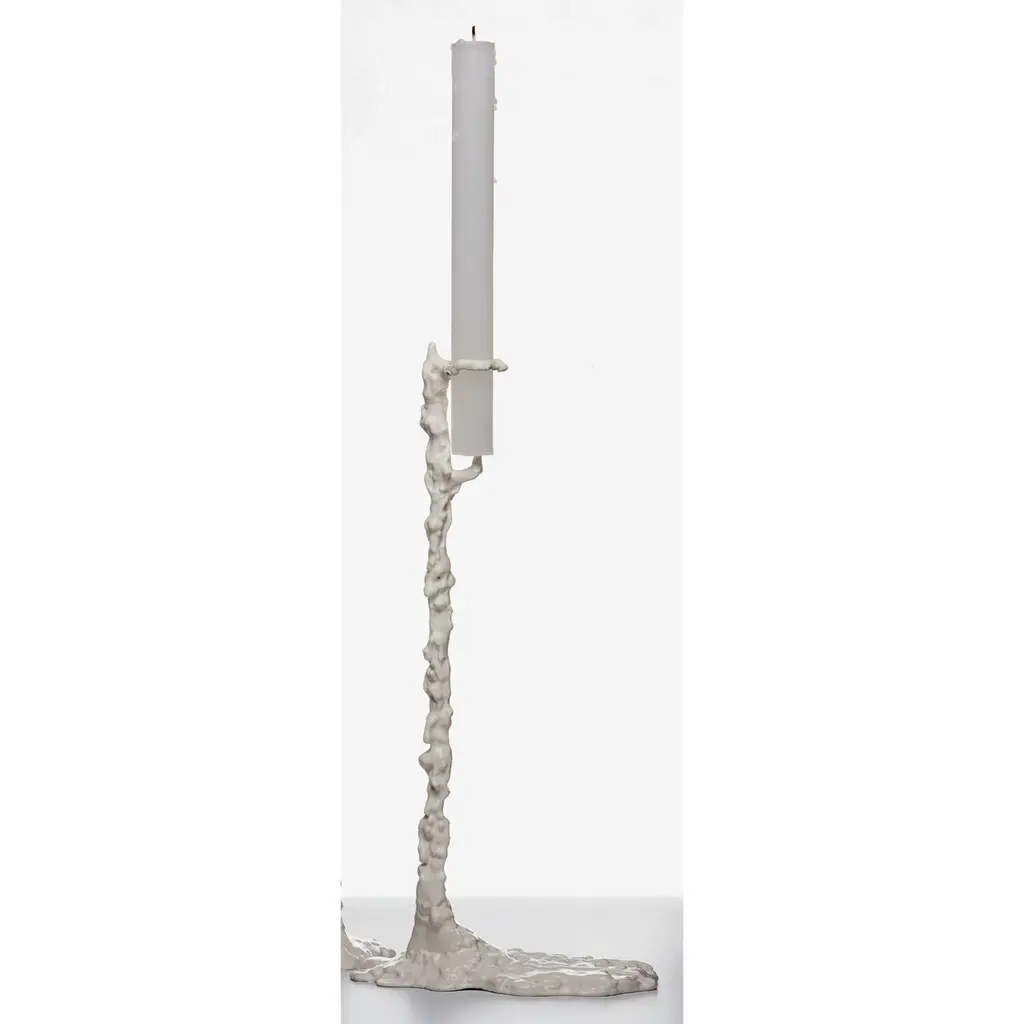 Alberto High Candleholder by Oscar TusquetsDimensions: D 8 x W 12 x H 28 cm.Materials: Cast iron painted in matte white.Available in two different sizes: low (D 6 x W 10 x H 20 cm) and high (D 8 x W 12 x H 28 cm). Please contact us.In a Surrealist play of semiotics, melted candle wax forms the candelabra itself,inspired by two of the movement’s greatest figureheads.In this design, Tusquets was inspired by one of Dalí's approaches: a softened vision of a rigid object. Candle wax was melted, solidified, and cast in bronze—originally left with its natural finish but later glazed in an off-white shade, such that when the candle burns and drips, the wax blends with the candelabra itself. Despite the influence of Dalí, the result looked somewhat like a sculpture by Alberto Giacometti, and Tusquets renamed the object accordingly.Oscar Tusquets describes himself as an architect by training, a designer by adaptation, a painter by vocation, and a writer through the desire to make friends. Graduating from Barcelona’s Escuela Técnica Superior de Arquitectura in 1965, Tusquets became a member of Studi Per. Together, they founded BD in 1972, and he set about designing furniture and objects, soon recognised by the Spanish National Design Award. BD BarcelonaIn 1972, a group of young architects and designers from Barcelona started BD. Our aim was to produce and market furniture and objects for our own projects, with complete creative freedom and design criteria—both in shape and in function—that was different from the sector norm.In 1972, a group of young architects and designers from Barcelona started BD. Our aim was to produce and market furniture and objects for our own projects, with complete creative freedom and design criteria—both in shape and in function—that was different from the sector norm.We began coming up with designs, inspired by our contemporaries, from Ettore Sottsass in Italy to Álvaro Siza Viera in Portugal. Here in Spain, we were supported by those seeking something other than what was on the market at the time. These early pieces helped bring international recognition to the country’s design scene, and many of them still exist today.The BD brand has been enriched by all the designs we’ve produced. The result is a sum of many things—memory, tradition, and respect for the classics, as well as talent, innovation, a sense of humour, and a lot of imagination.
