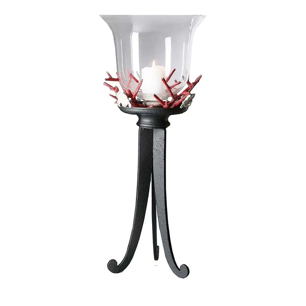 Straightforwardly revealing its marine inspiration at first glance, this elegant candle holder in fine white ceramic actualizes an original design by Antonio Fullin. A rich composition of sea shells characterizes its silhouette, which embraces a tall glass container where the candle is inserted. A superb addition to hospitality and home decors.