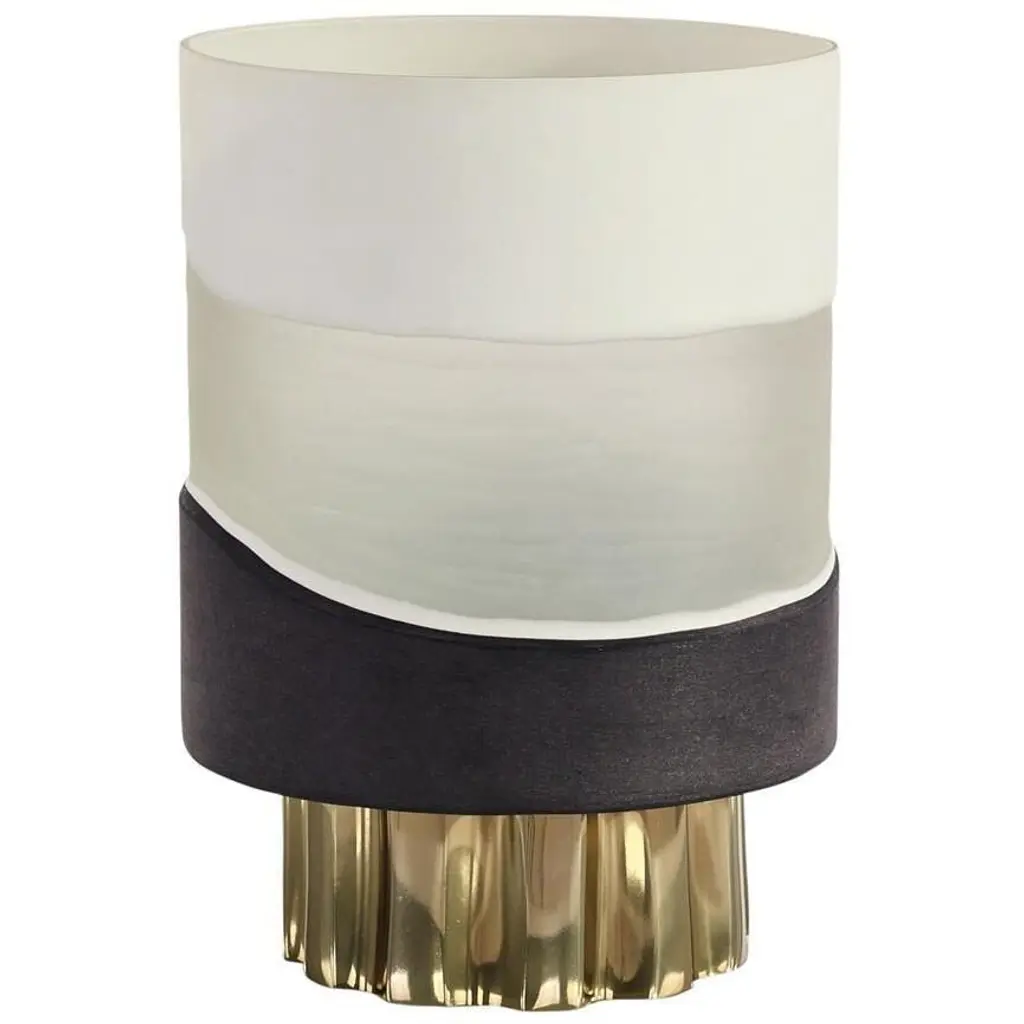 The Apollo Hurricane is a contemporary tabletop accent that introduces a variety of tones and textures to any décor. Rounded art glass displays deep blacks and misty whites, beautifully complementing a fluted aluminum base in a Champagne finish.