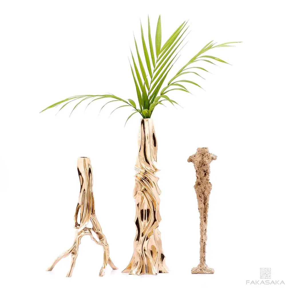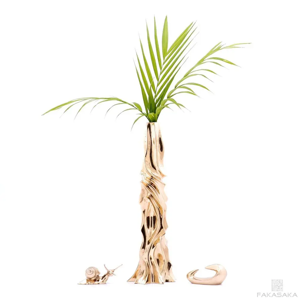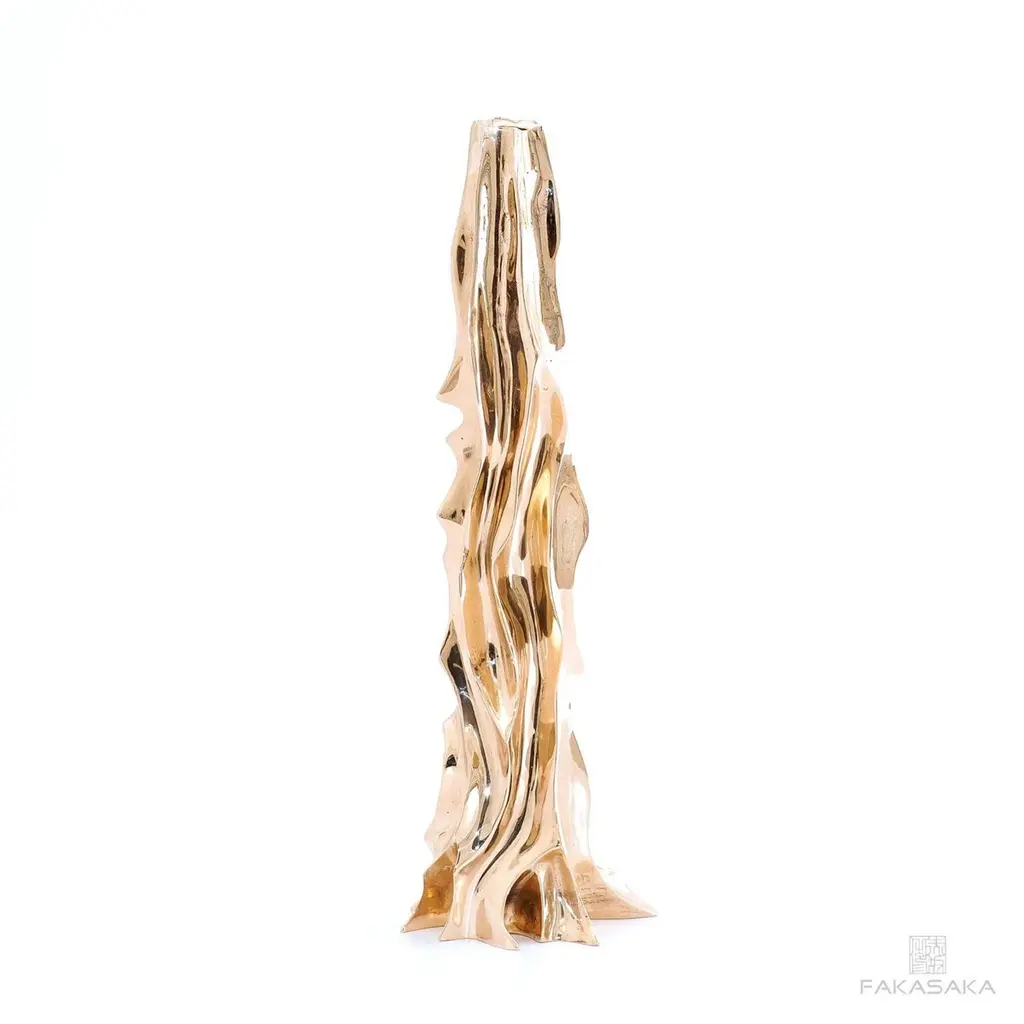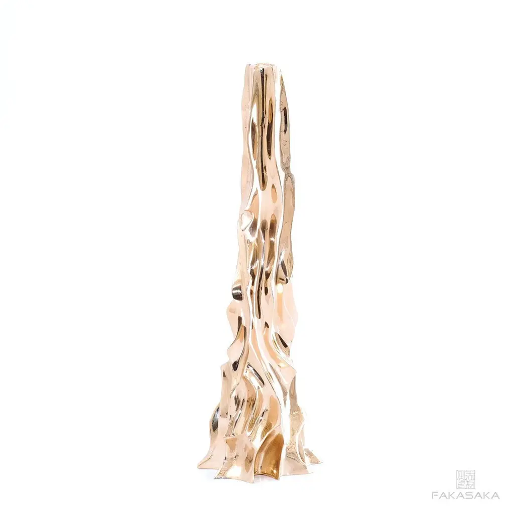Apple candleholder by Fakasaka designDimensions: W 13.5 cm D 13.5 cm H 41.5.Materials: polished bronze.Also available in dark bronze. Fakasaka is a design company focused on production of high-end furniture, lighting, decorative objects, jewels, and accessories. Established in 2007, Fakasaka is the eponymous design company by Brazilian artist Fernando Akasaka distinguished by a penchant for producing intricate detailed cast bronze collectible design objects, furniture and jewelries. Fakasaka explores the contrast between the manmade and the natural through shapes and finishes that create a clear aesthetic. The constant challenge to balance elements is met with an outcome that is a striking assortment of bronze furniture and objects in oxidised and polished finishes, accented with precious regional stones, granites and rich prehistoric reptilian motifs.