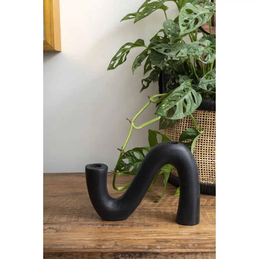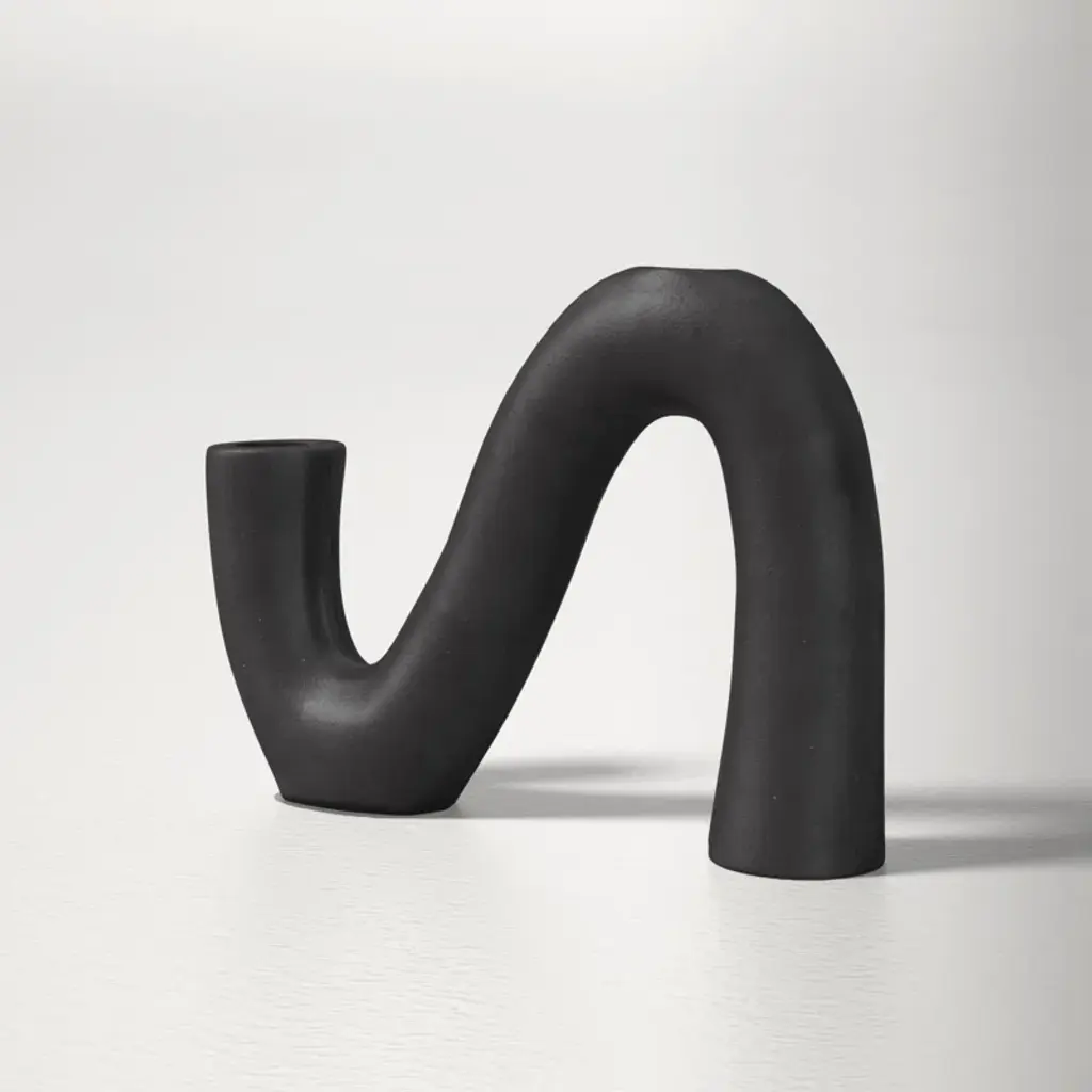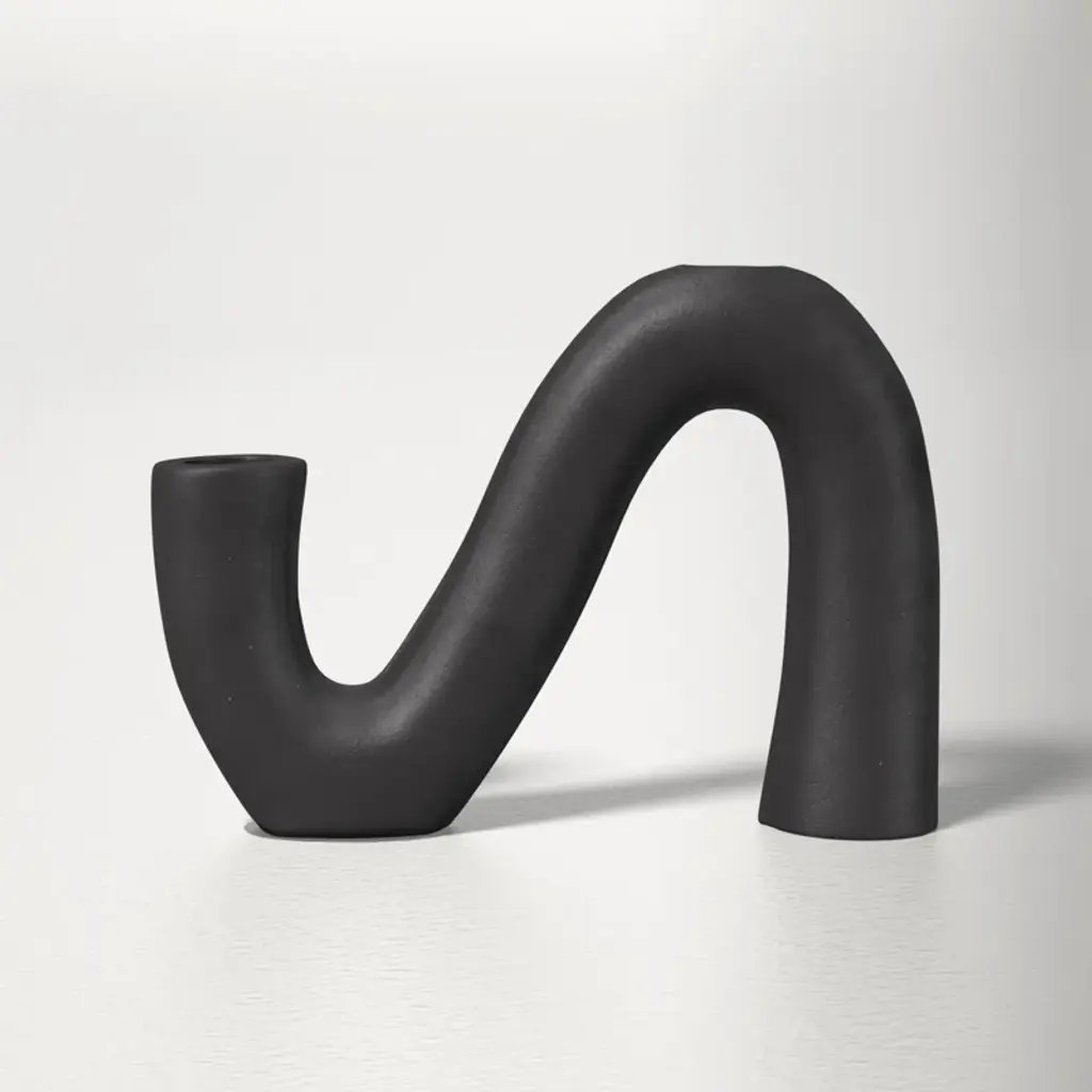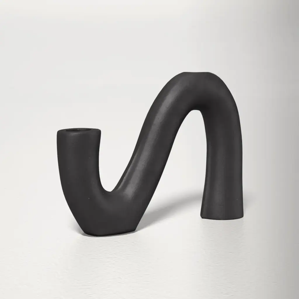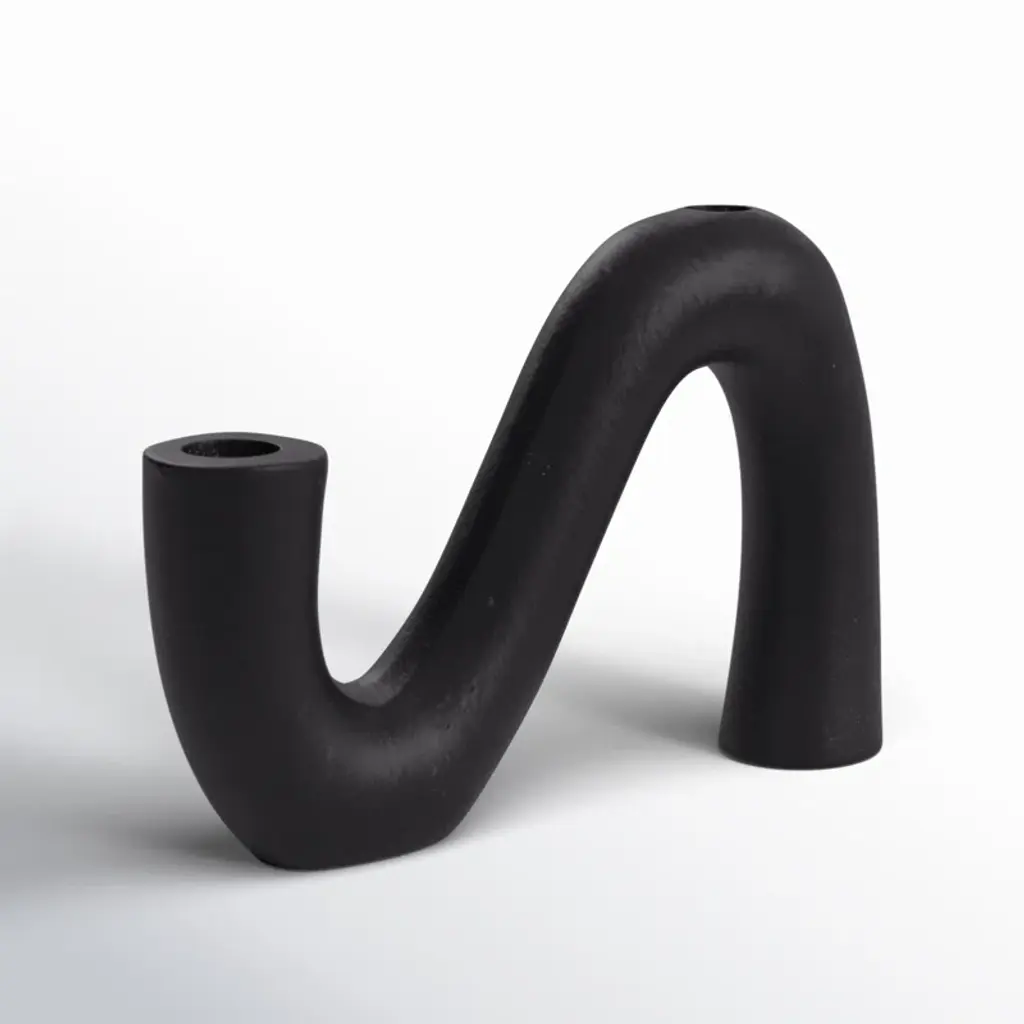 The curled silhouette of the Arash Candle Holder is finished with a texture that leaves every piece unique. Each end of the tube is left open and is designed to hold a taper candle.