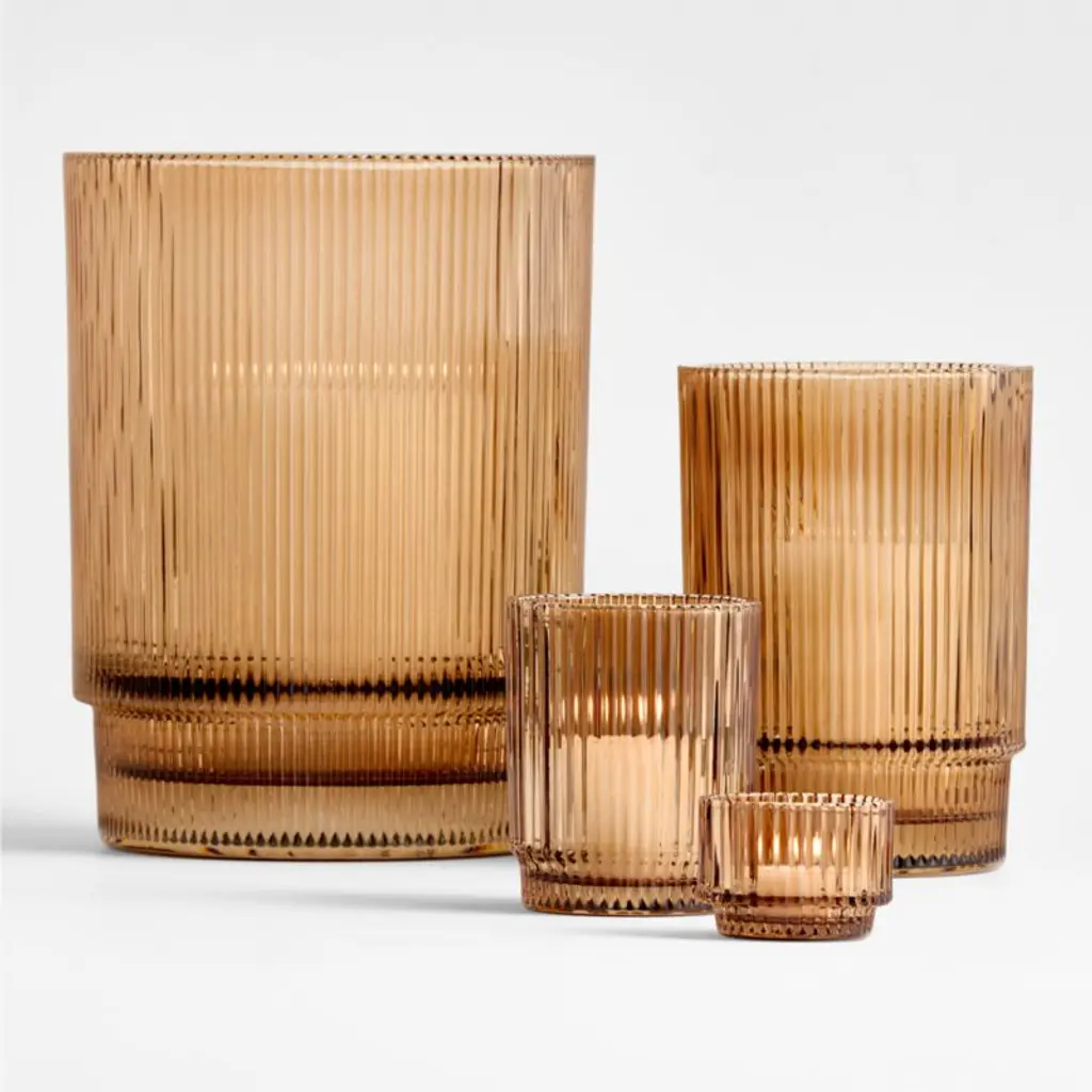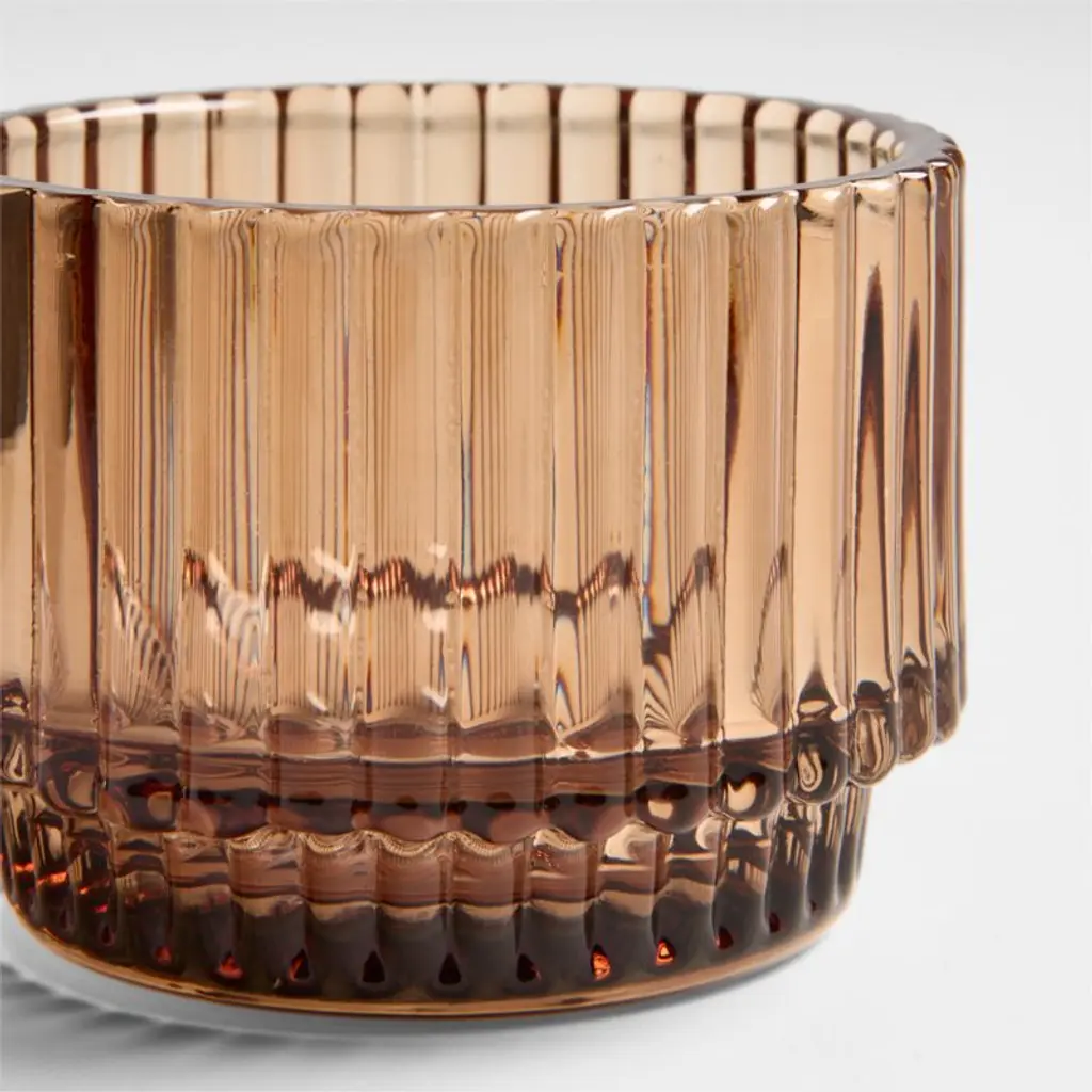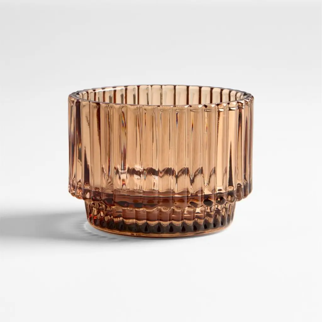 Inspired by our exclusive Atwell drinkware, this candlelight collection is a modern take on classic glass hurricanes. Sparkling tiers of ribbed glass shape a tealight holder in a warm grey-brown hue. The ridged surface catches the light while filtering candlelight to create a moody, ethereal glow. Understated yet eye-catching, this petite tealight holder mixes and matches effortlessly with the other pieces in our Atwell collection to set a sophisticated table.