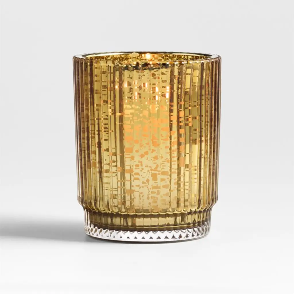 Inspired by our exclusive Atwell drinkware, this candlelight collection is a modern take on classic glass hurricanes. Incised with slim ridges, the tiered and textured candleholder takes on extra sparkle with a bronze-gold mercury glass finish. You'll love the festive vibe and soft glow that Atwell imparts to your holiday decorations and tablescapes.