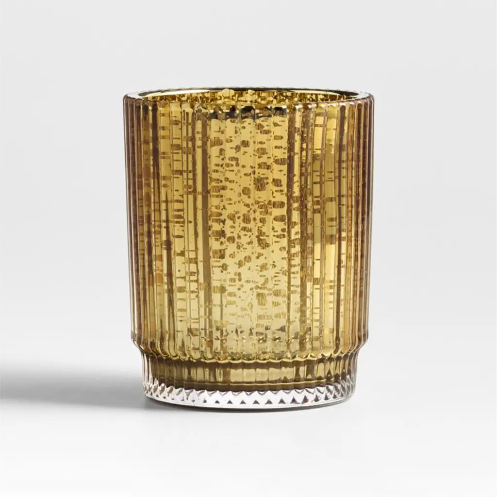 Inspired by our exclusive Atwell drinkware, this candlelight collection is a modern take on classic glass hurricanes. Incised with slim ridges, the tiered and textured candleholder takes on extra sparkle with a bronze-gold mercury glass finish. You'll love the festive vibe and soft glow that Atwell imparts to your holiday decorations and tablescapes.