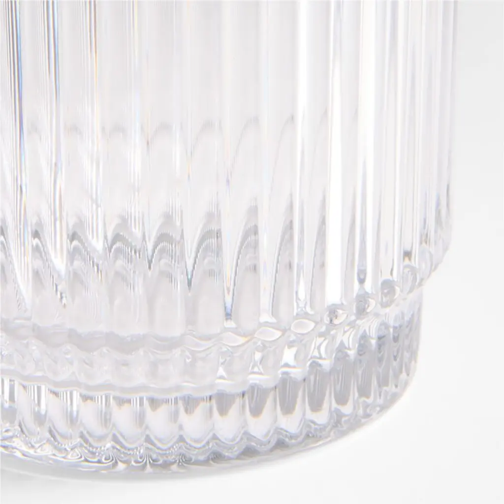 Inspired by our exclusive Atwell drinkware, this candlelight collection is a modern take on classic glass hurricanes. Sparkling tiers of ribbed clear glass shape the glam hurricane, the ridged surface catching the light while filtering candlelight to create an ethereal glow. Understated yet eye-catching, this small candle holder mixes and matches effortlessly with the other pieces in our Atwell collection (and doubles as a vase) to set a sophisticated table.