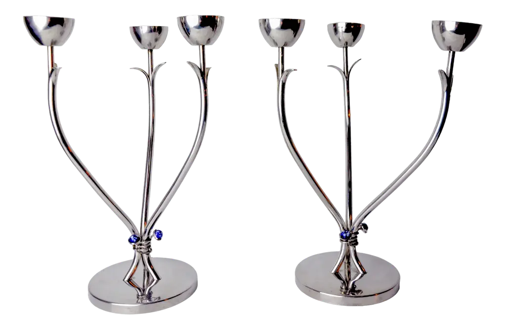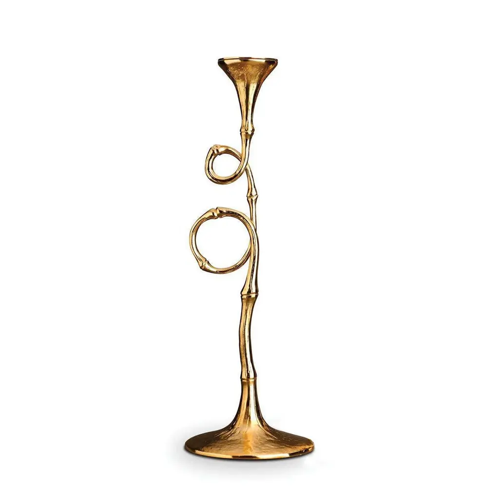 Candleholders bamboo set of 2in metal in 24-karat gold-plated.