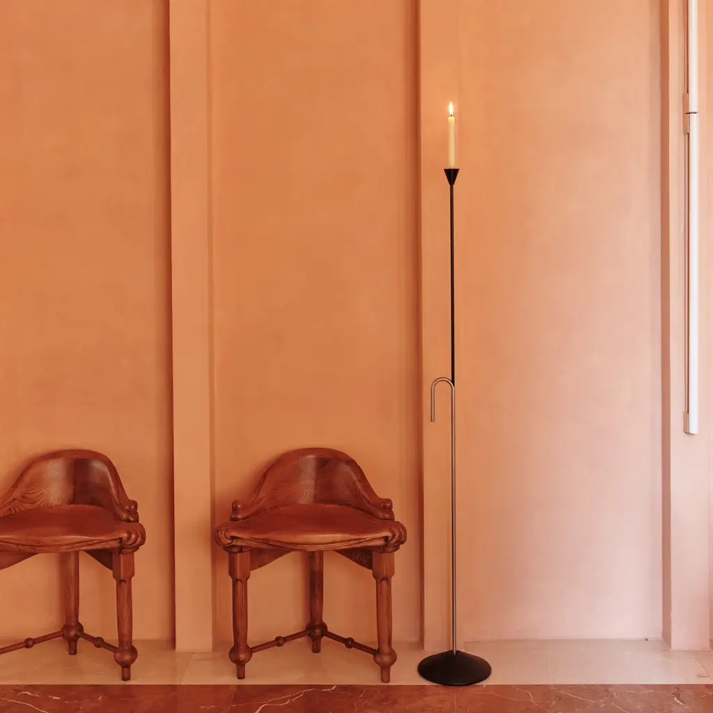 The Baton Candle Holder embodies the simplicity of the Baton collection, drawing inspiration from the shape of a cane. The slender design allows it to seamlessly blend in, whether displayed alone or in a group, enhancing the ambiance with its refined form. Designed to hold standard candles, it is a sophisticated accent, whether used on its own or paired with other pieces from the Baton collection. Available in 2 heights.