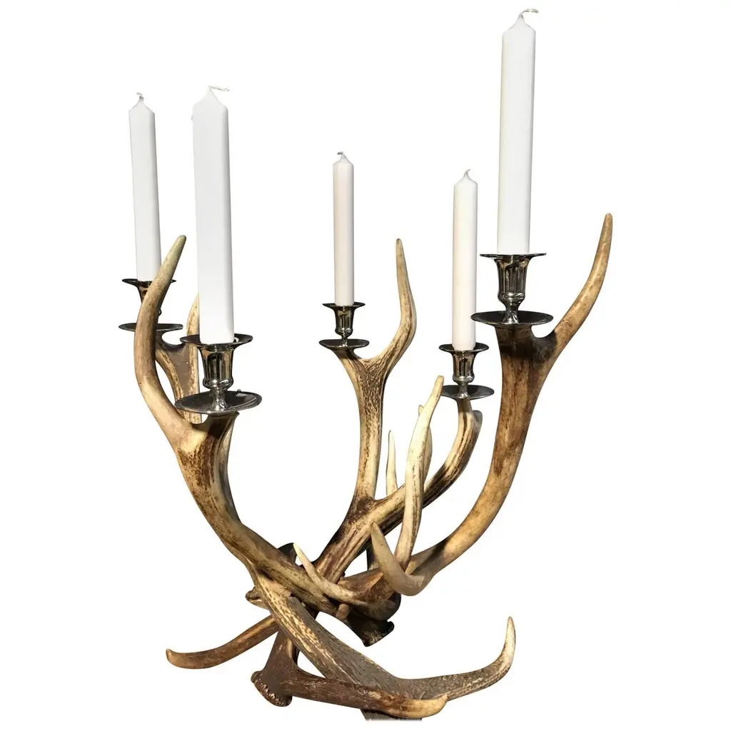 ANTLER HALL CANDLESTICKS (S2). ANTIQUE BRASS FINISH ON ALUMINUM