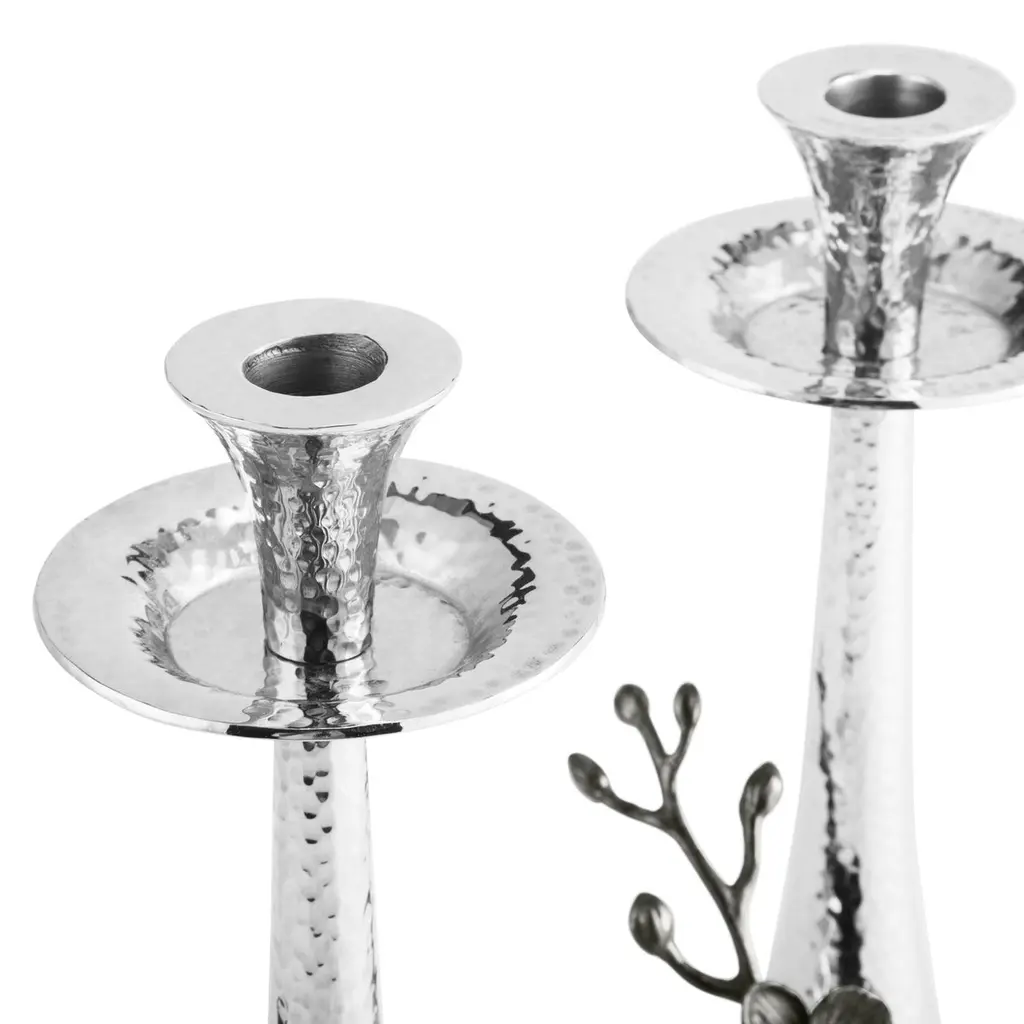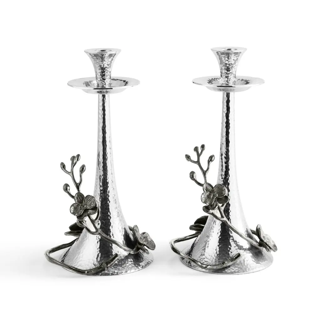Black Orchid Candlesticks, High-Quality Silver-Plated Metal With A Patina Finish