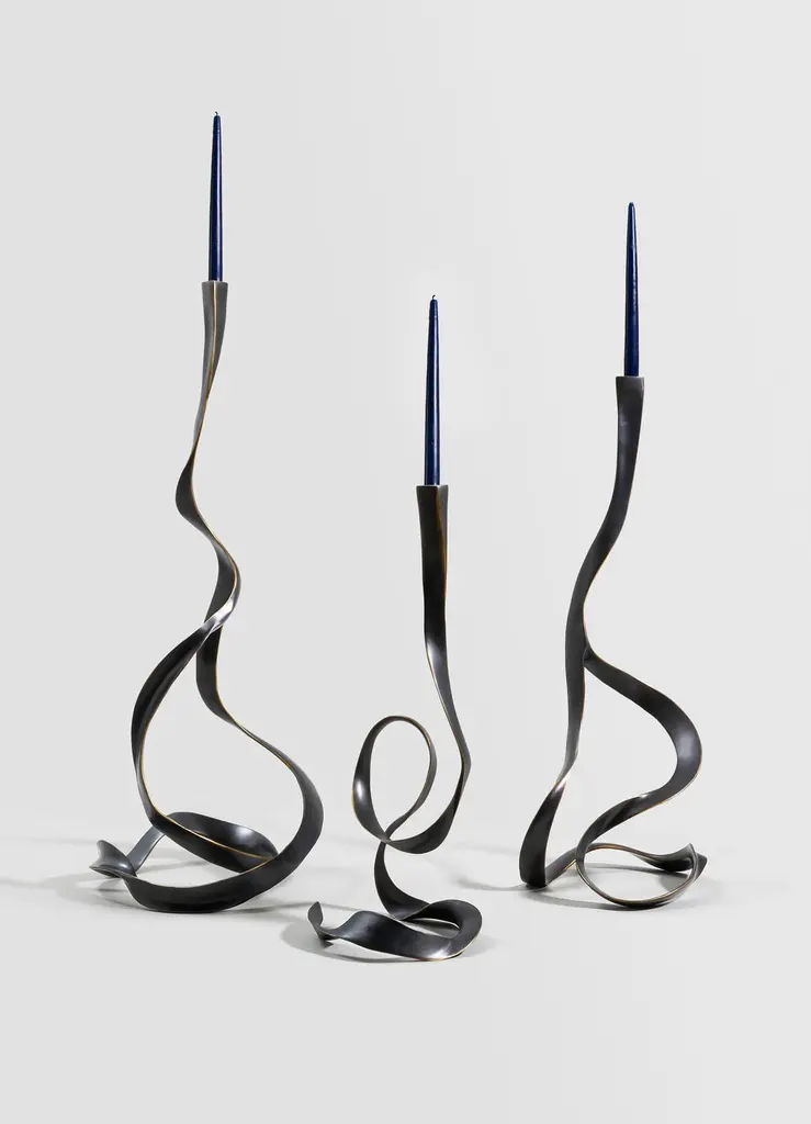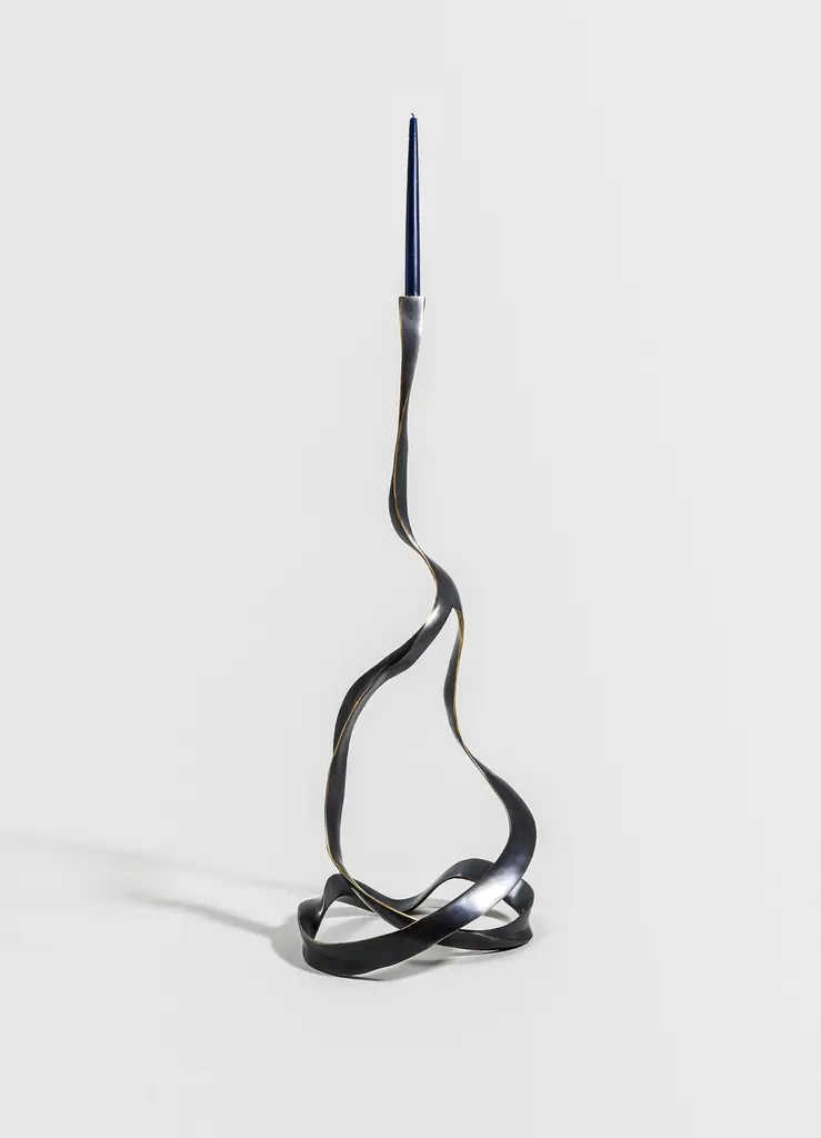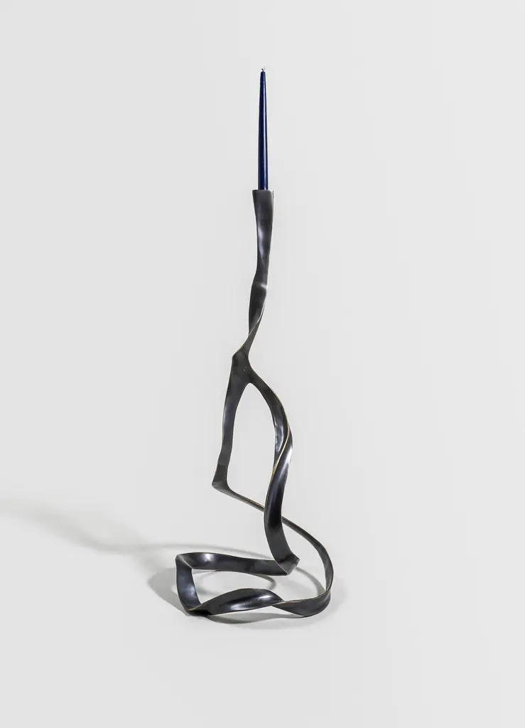 Blackbuck Candle Stand Large in Brass, Viya by Vikram GoyalThe Blackbuck is an animal revered across cultures, and in India symbolic of purity and the divine. Our collection of cast brass objects manifest some of these traits; the dark graceful twisting forms, inspired by its antlers, rise skyward. Through their form, they capture the delicate balance of earthly virtue and celestial yearning.Candle Stand in brass with semi precious inserts. Handmade in India.Product DetailsMaterial: BrassSize: 13"L x 13"W x 35"H 33 L x 33 W x 88.9 H cmWeight: 5.5 kg 12.1 lbsNumber of Pieces: 1 Candle StandSKU: VCS153This product has been handcrafted by local artisans. As such, slight variations are a testament to the unique character of a piece made by hand.