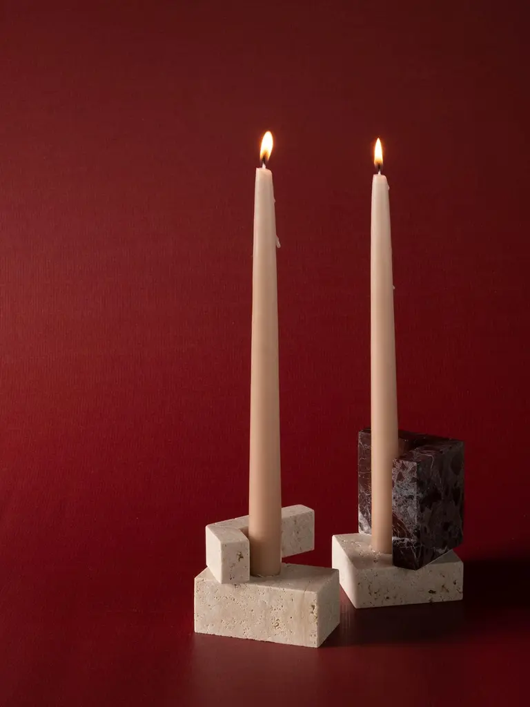Block Rosso Lepanto High Candle Holder by StudionudoUnique Piece.Dimensions: D 9 x W 9 x H 12 cm.Materials: Rosso Lepanto marble.Different materials and sizes are available. Prices may vary. Please contact us.Strict and hard blocks, that remind of mini architecture; they get struck each other giving birth to a new object. The marble, thanks to its natural beauty in color and texture, is transforming everything into a gorgeous and prestigious item.The pieces come to life from materials such as Travertine, Rosso Lepanto, Verde Guatemala, Carrara, and Nero Marquina.For both the candle holders and centerpieces, you can combine Travertine with Rosso Lepanto and Verde Guatemala, or use the five finishes individually to create the object in a single material.Studionudo was born to transform raw materials into objects of daily use, carefully saving their intrinsic qualities. Shapes and colors related to nature reflect the growing desire for open-air life, bringing us to pure and free spaces. The essential cooperation with Italian artisans creates a primordial connection between nature and design. Expert and virtuous hands confer uniqueness to every piece. Each item becomes an artistic and unrepeatable expression, creating a strong relationship between objects and people living in the same space.We strongly believe in handcraft as a unique solution to give life to eachobject, which is part of that place we love to call home. “Only the objects we love last forever”.Behind each project is a connection between the designer and the artisan, materials, and shapes. The most important aspects of this creative process are the capacity to keep the best from raw materials, the artistic interpretation of the master, and the effort to transform “project limits” into opportunities. The whole process aims to reach a relationship that gives birth to beauty through dialog and respect for both the people and the materials.