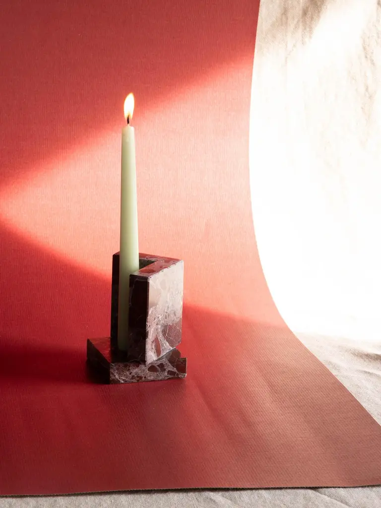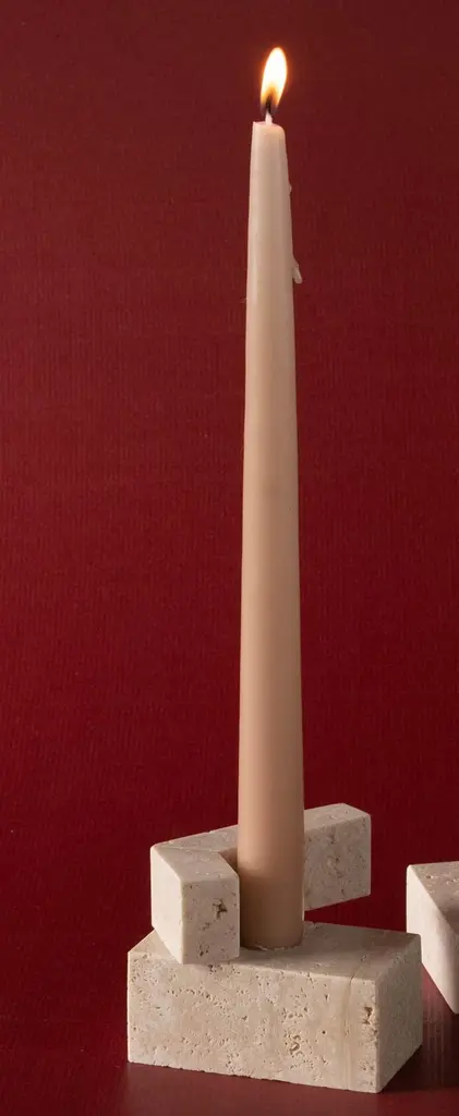 Block Travertine Low Candle Holder by StudionudoUnique Piece.Dimensions: D 4 x W 11 x H 8 cm.Materials: Travertine.Different materials and sizes are available. Prices may vary. Please contact us.Strict and hard blocks, that remind of mini architecture; they get struck each other giving birth to a new object. The marble, thanks to its natural beauty in color and texture, is transforming everything into a gorgeous and prestigious item.The pieces come to life from materials such as Travertine, Rosso Lepanto, Verde Guatemala, Carrara, and Nero Marquina.For both the candle holders and centerpieces, you can combine Travertine with Rosso Lepanto and Verde Guatemala, or use the five finishes individually to create the object in a single material.Studionudo was born to transform raw materials into objects of daily use, carefully saving their intrinsic qualities. Shapes and colors related to nature reflect the growing desire for open-air life, bringing us to pure and free spaces. The essential cooperation with Italian artisans creates a primordial connection between nature and design. Expert and virtuous hands confer uniqueness to every piece. Each item becomes an artistic and unrepeatable expression, creating a strong relationship between objects and people living in the same space.We strongly believe in handcraft as a unique solution to give life to eachobject, which is part of that place we love to call home. “Only the objects we love last forever”.Behind each project is a connection between the designer and the artisan, materials, and shapes. The most important aspects of this creative process are the capacity to keep the best from raw materials, the artistic interpretation of the master, and the effort to transform “project limits” into opportunities. The whole process aims to reach a relationship that gives birth to beauty through dialog and respect for both the people and the materials.