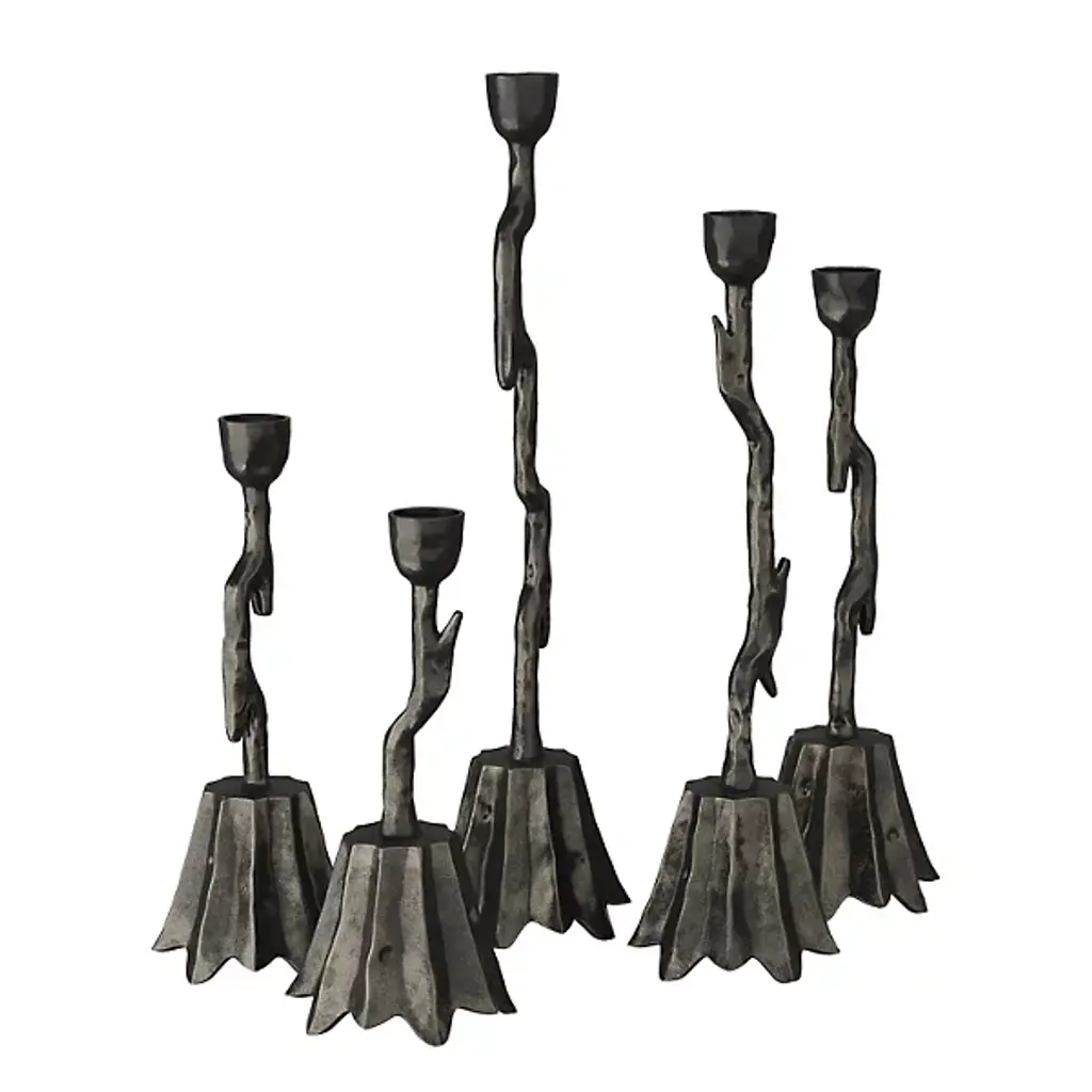 The Brandt Candlesticks, Set of 5, from Arteriors is a captivating set that merges fine craftsmanship with a bold Brutalist design. These candlesticks feature finely contoured lines, sculpting a distinctive and intriguing fixture. The bases of the candlesticks are thoughtfully pointed at the ends, accentuating their industrial look. Crafted from fine aluminum, Brandt exudes durability.