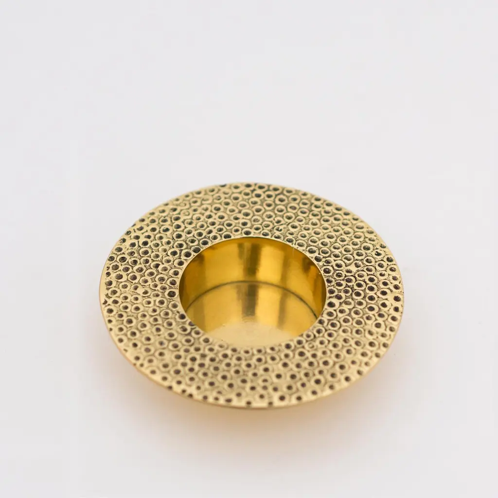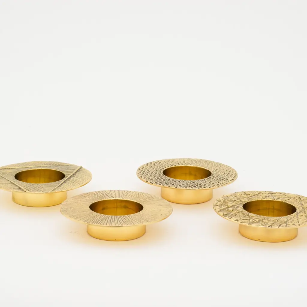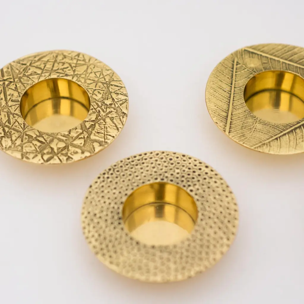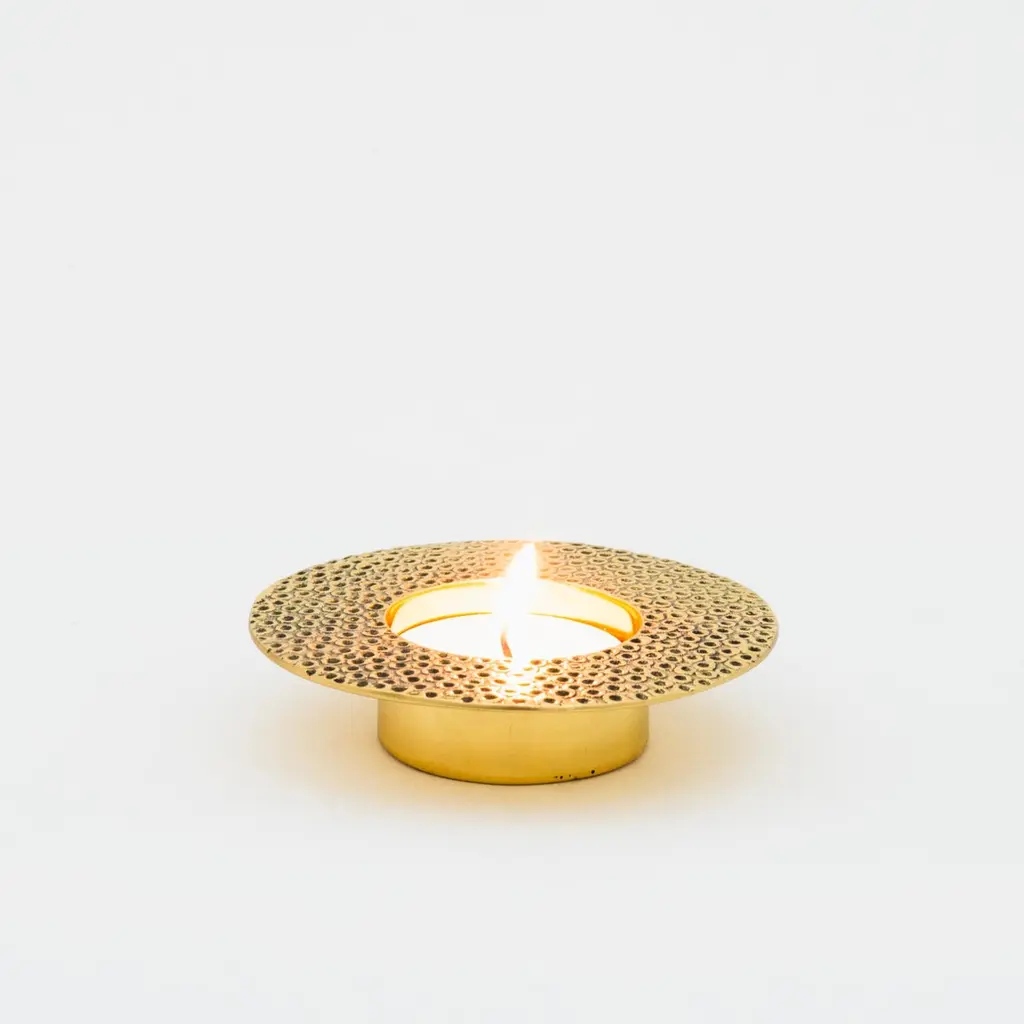 Each of those original brass tea light holders is handmade individually. Cast and textured using very traditional techniques, they are polished revealing the lustrous finish of this beautiful material.Slight variations in the patina and polished finishes, patterns and sizes are characteristics of such original handmade creations. These characteristics enhance the beauty of the product and make each piece unique.ORDERS OF MULTIPLE ACCESSORIES OF THE SAME TYPE: Please contact us to receive a Packing and Shipping quote when ordering multiple accessories of the same type. An order for multiple accessories of the same type may not be accepted without extra packing and shipping fees. Thank you.