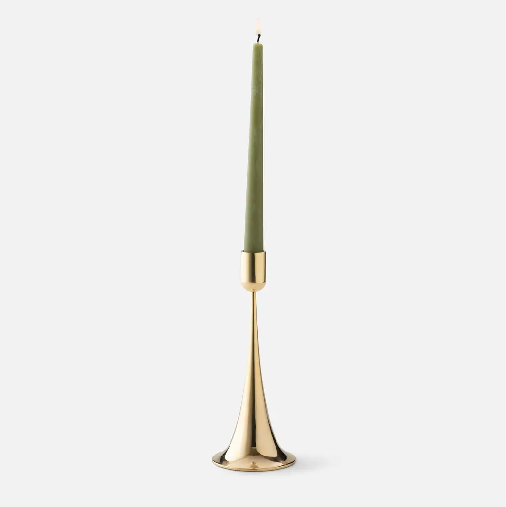 Elevate your home this season with the elegant Brass Trumpet Candle Holder. With a trumpet-inspired design that adds a touch of sophistication to any room, this refined candle holder is crafted from solid brass and features a lustrous finish that radiates a sense of warmth and charm. Striking as a standalone centerpiece, or grouped together to create an enchanting ensemble, its inviting ambiance will transform any space.