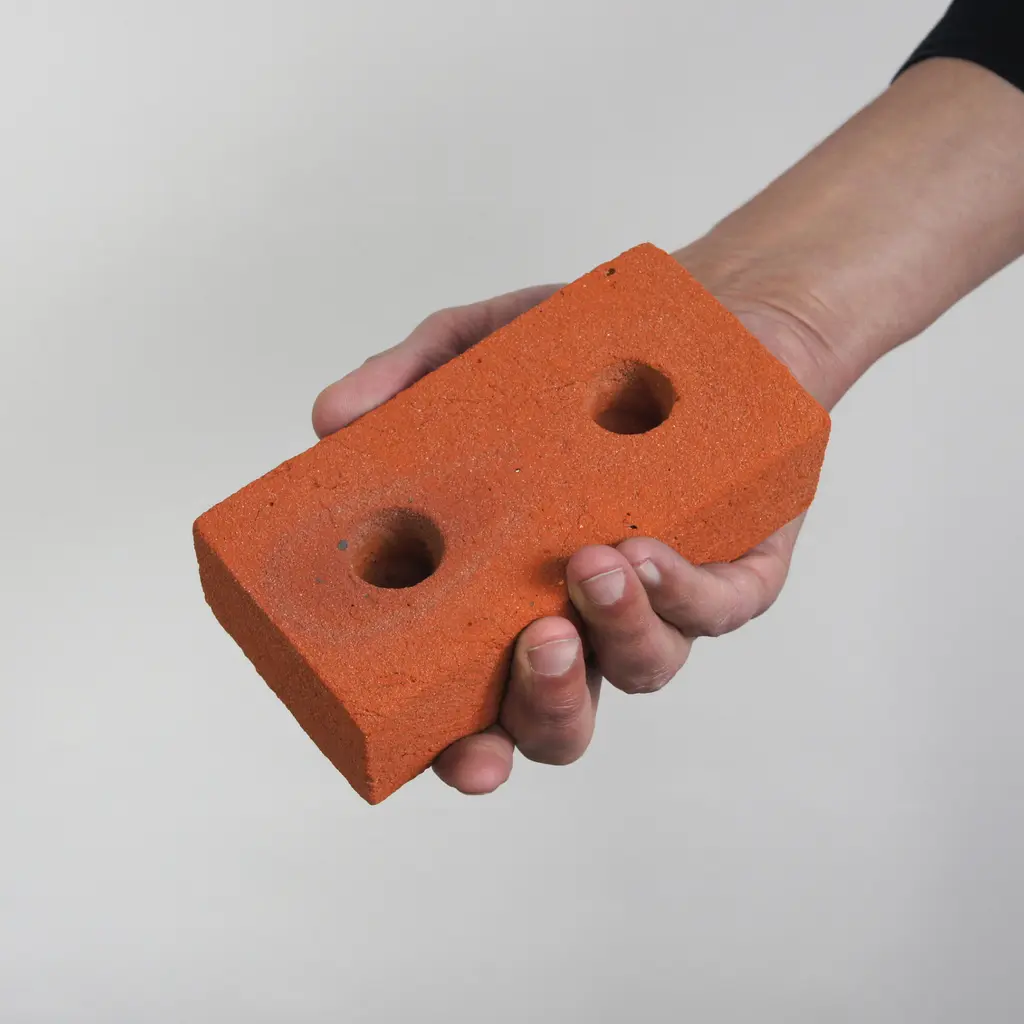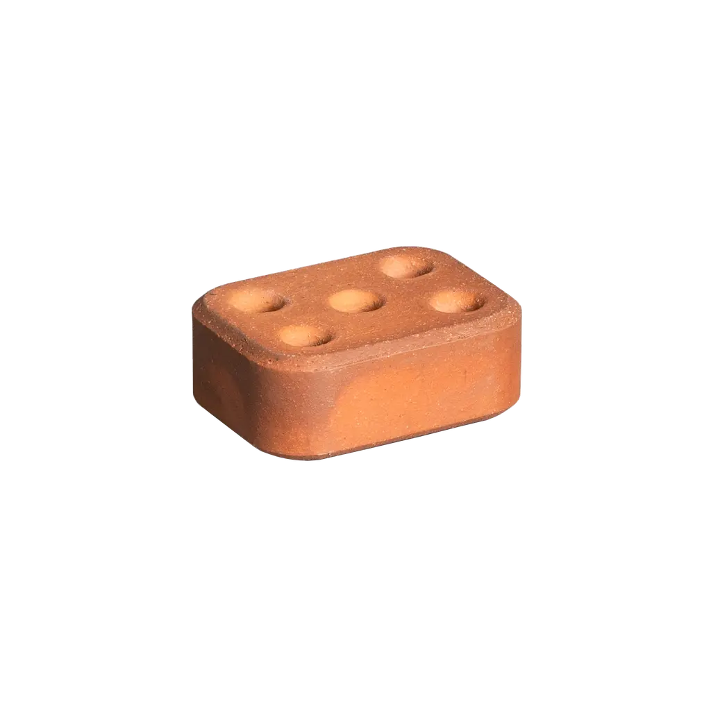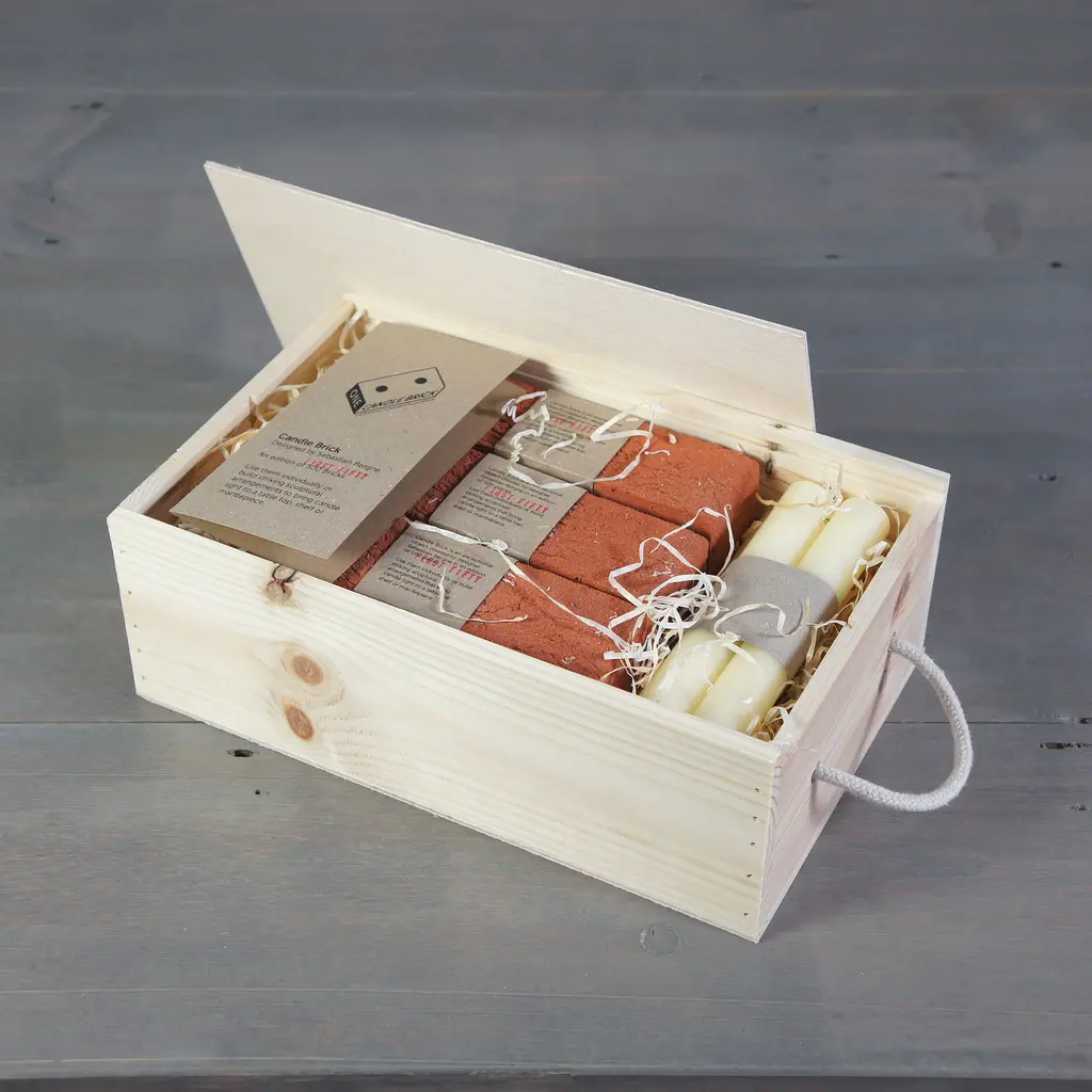 Build your own light sculpture with this brick candle holder that becomes the center of attention anywhere you place it. Created by Sebastian Bergne, Candle Brick reimagines the quintessential building material as a home accessory. Each candle holder is carefully handcrafted and features a distinctive rough texture and a warm color. Two openings provide room for candles or for one candle and matches. This product can be used on its own or in a sculptural composition with stacked bricks in different positions holding candles of different heights, for example. Either way, this brick candle holder is an eye-catcher anywhere, whether you want to use it to brighten a dining table, shelf, windowsill, or bar area. Candle Brick is part of a limited series. Made in London, UK, it comes unglazed with a sealed surface.