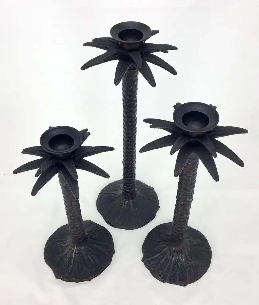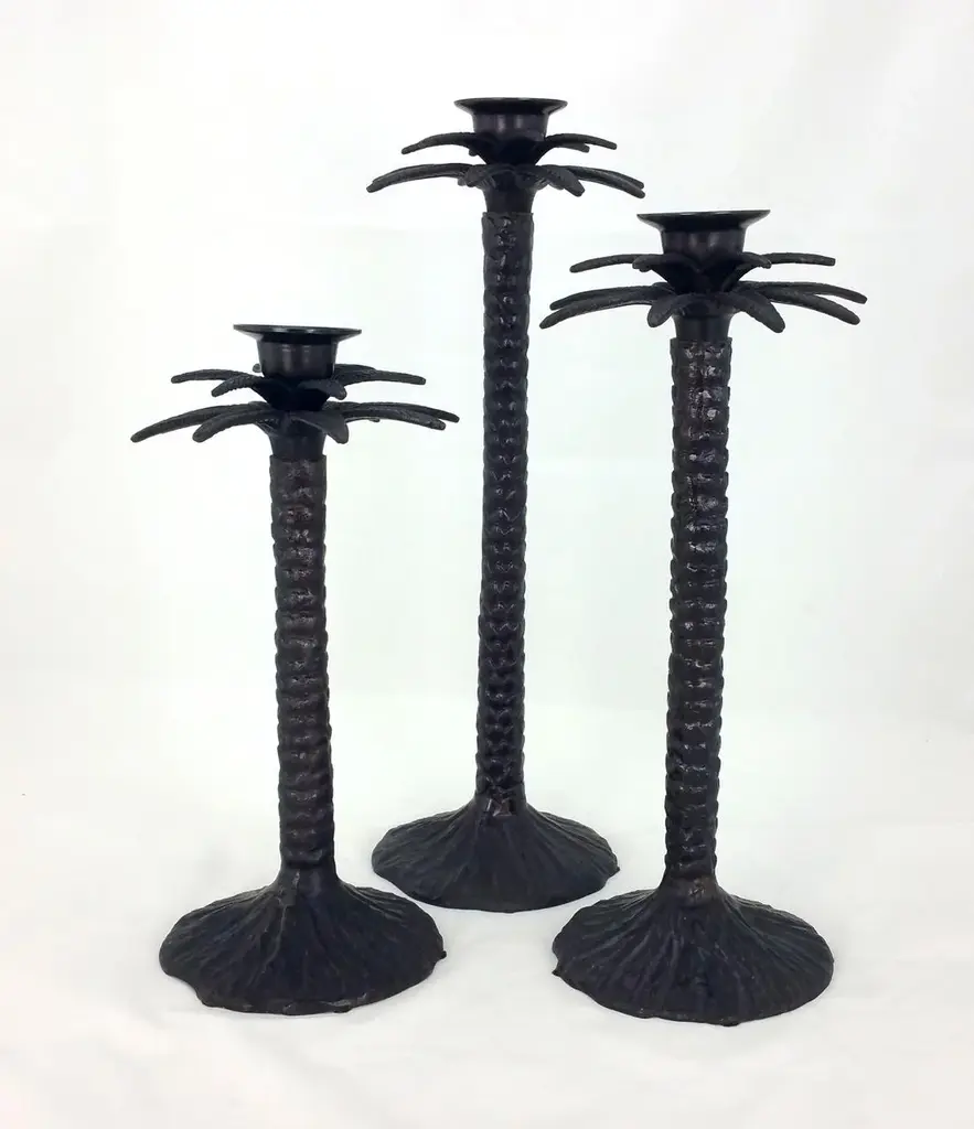 Set/3 Bronze Palm Tree Candle Holders. A great decor set!