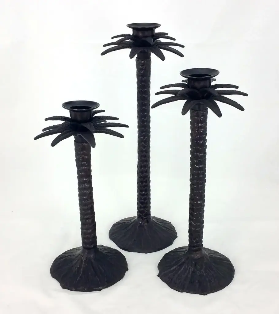 Bronze Palm Tree Candle Holders - Set Of 3