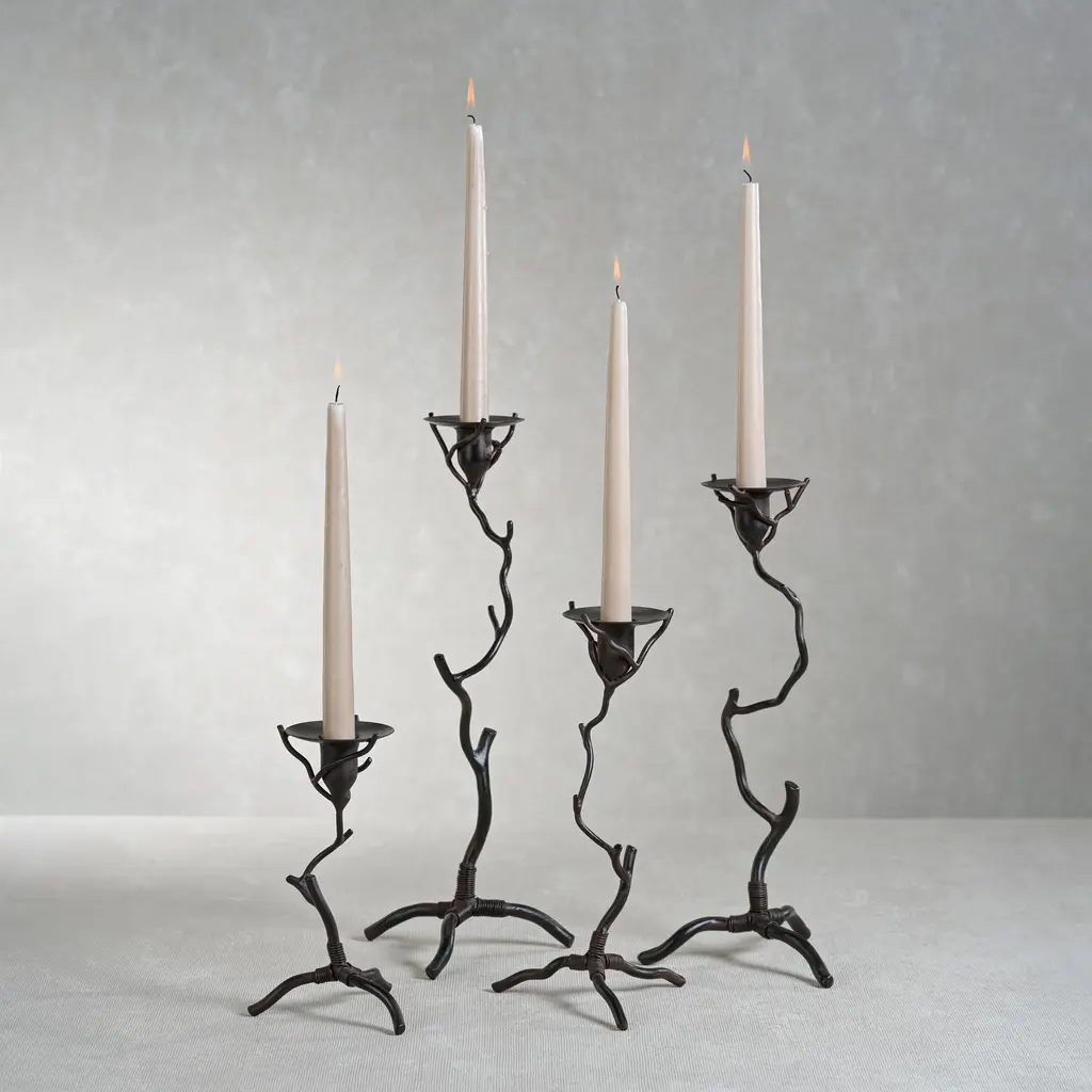 Brunel Twig Design Wrought Iron Candleholder, 11"