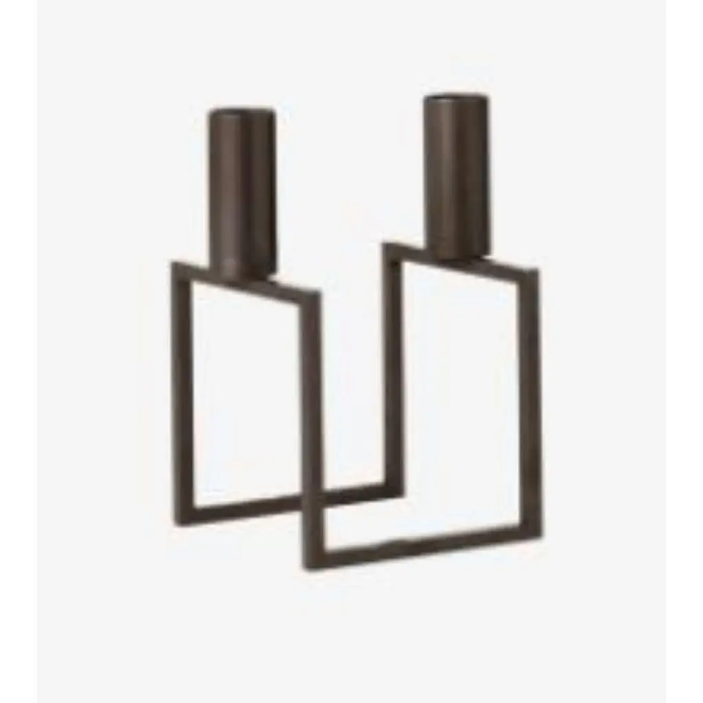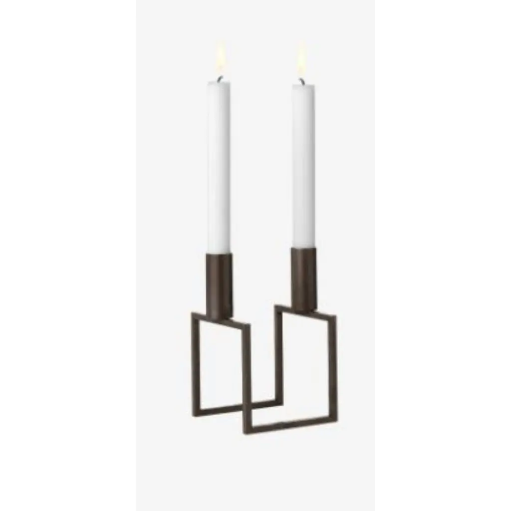 Burnished copper line candle holder by LassenDimensions: D 10 x W 10 x H 16 cm Materials: Metal Also available in different dimensions. Weight: 0.60 KgWith a sharp sense of contemporary Functionalist style, Mogens Lassen designed the iconic Kubus candleholder in 1962, a piece once reserved solely for family and close architect colleagues. In 1983 he reapproached his own geometric candleholders, and the result was Line, whose shape was conceived through a mathematical formula. The two candleholders form a single line, and the architectural look fits perfectly with contemporary minimalism. Kubus and Line is still crafted in Denmark, and among architects and design connoisseurs it has acheived the status of a modern international design icon.By Lassen is a Danish design brand focused on iconic designs created by Mogens and Flemming Lassen, founded by Lassens’ relatives in 2008. Brothers Mogens (1901-1987) and Flemming (1902-1984) Lassen are known as two of Denmark’s greatest architects and designers. Both were renowned pioneers of Danish functionalism and modernist architecture, honoured with numerous prestigious medals and awards. Headed by Mogens Lassen’s grandson Søren Lassen, By Lassen carries on the brothers’ design philosophy by manufacturing their iconic designs as well as products by other designers that complement the Lassen’s functionalist style. The company’s mission is to continue the tradition of timelessness, functionality and quality, and to introduce the Lassen’s design heritage to new generations.