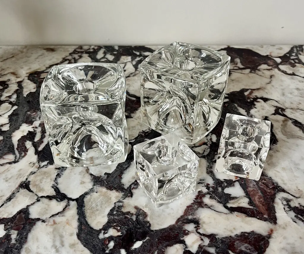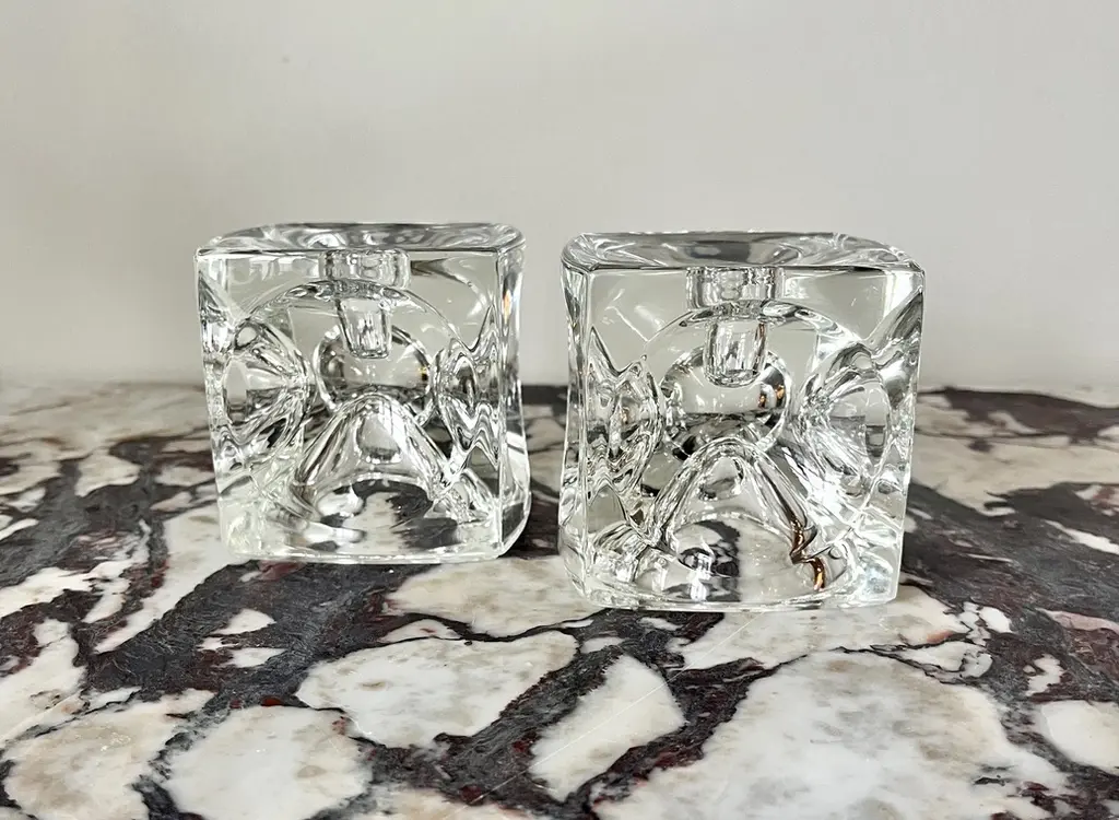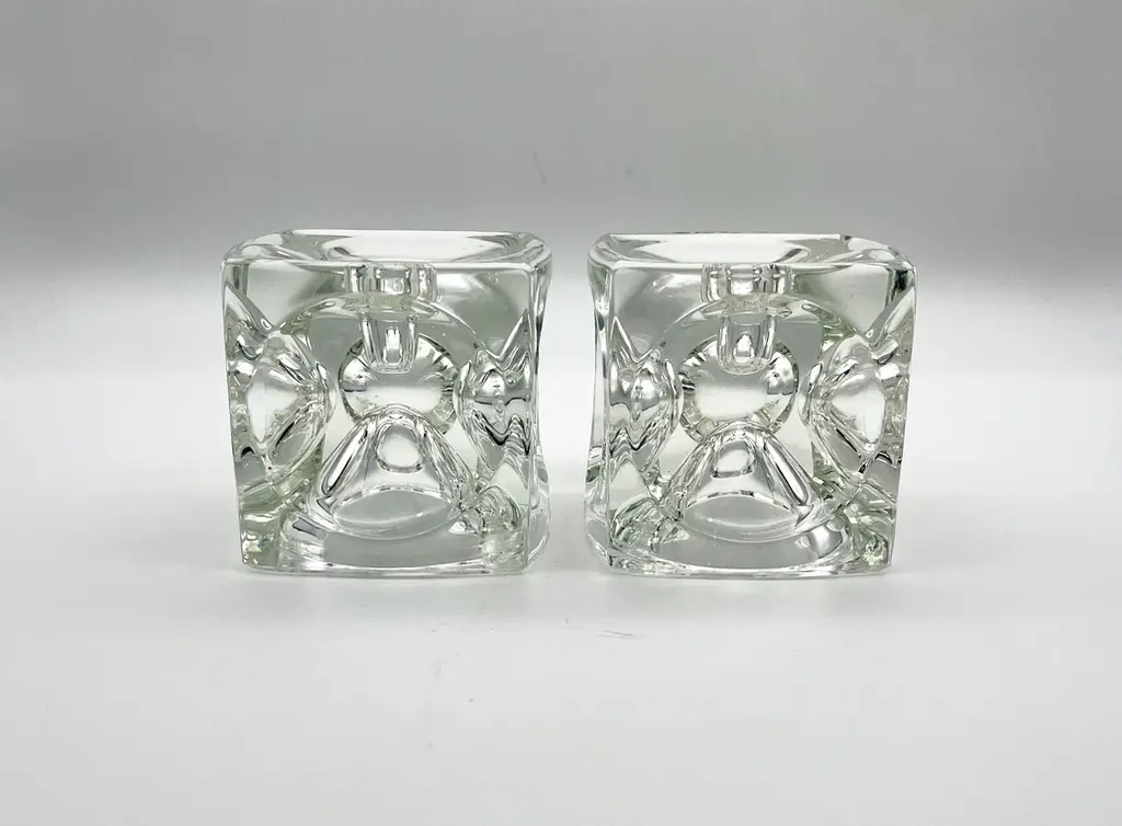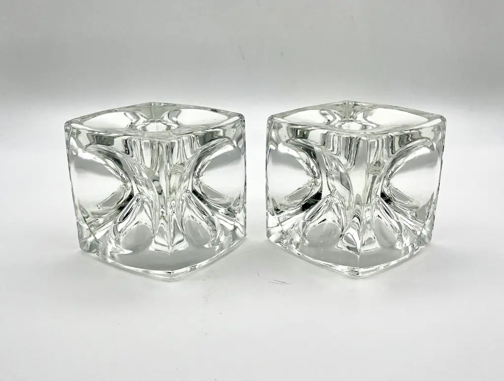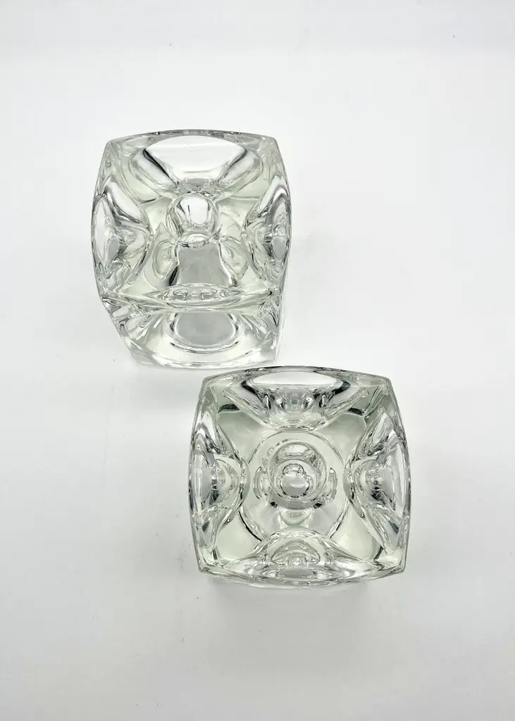 C. 1960s Crystal Cube Candle Holders