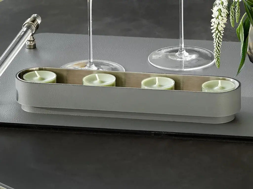 Candle holder for pleasant ambient light. Plastic foot protects sensitive surfaces from scratching and heat.