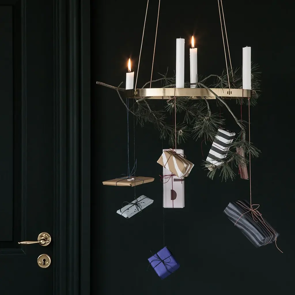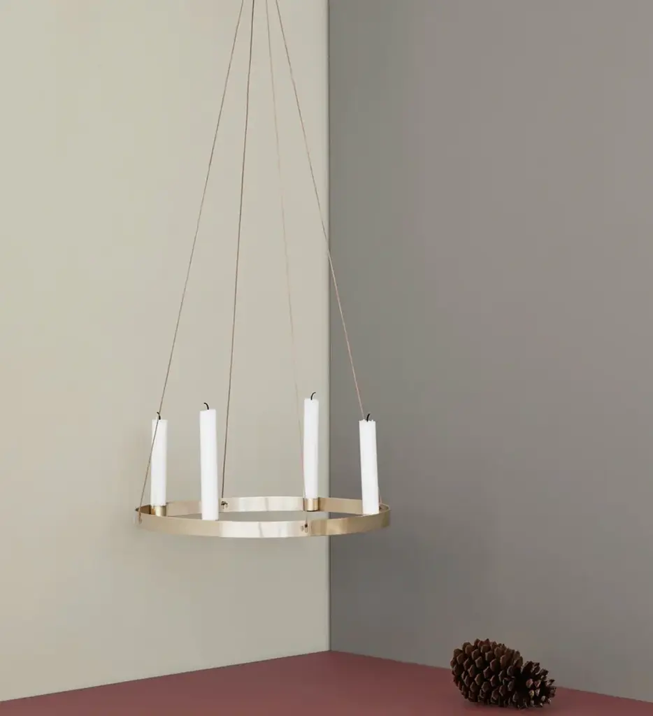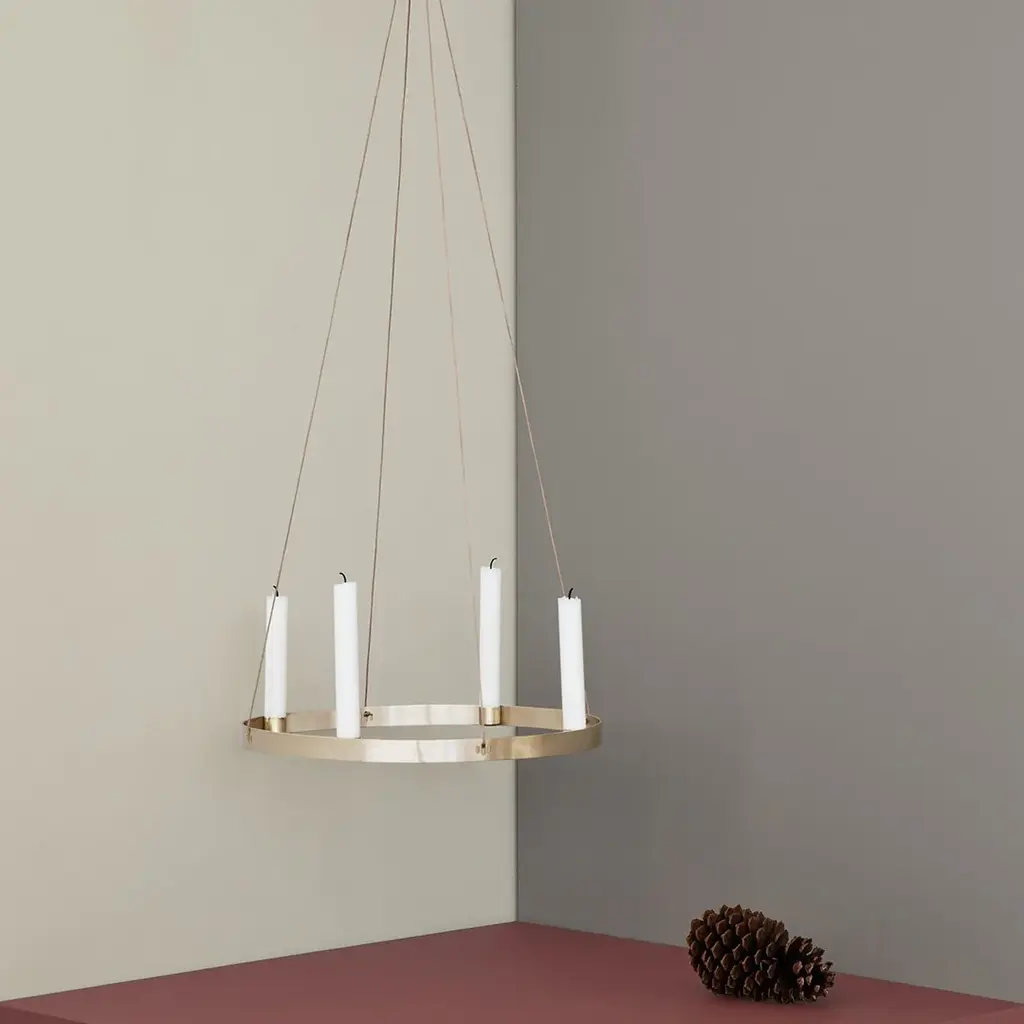 This multifunctional and minimalistic candle holder is made from all natural materials and will look beautiful whether you put it directly on a table or hang it from the ceiling in the removable leather strings. An instant classic you will use every December and throughout the year. Made in solid brass, polish when needed.