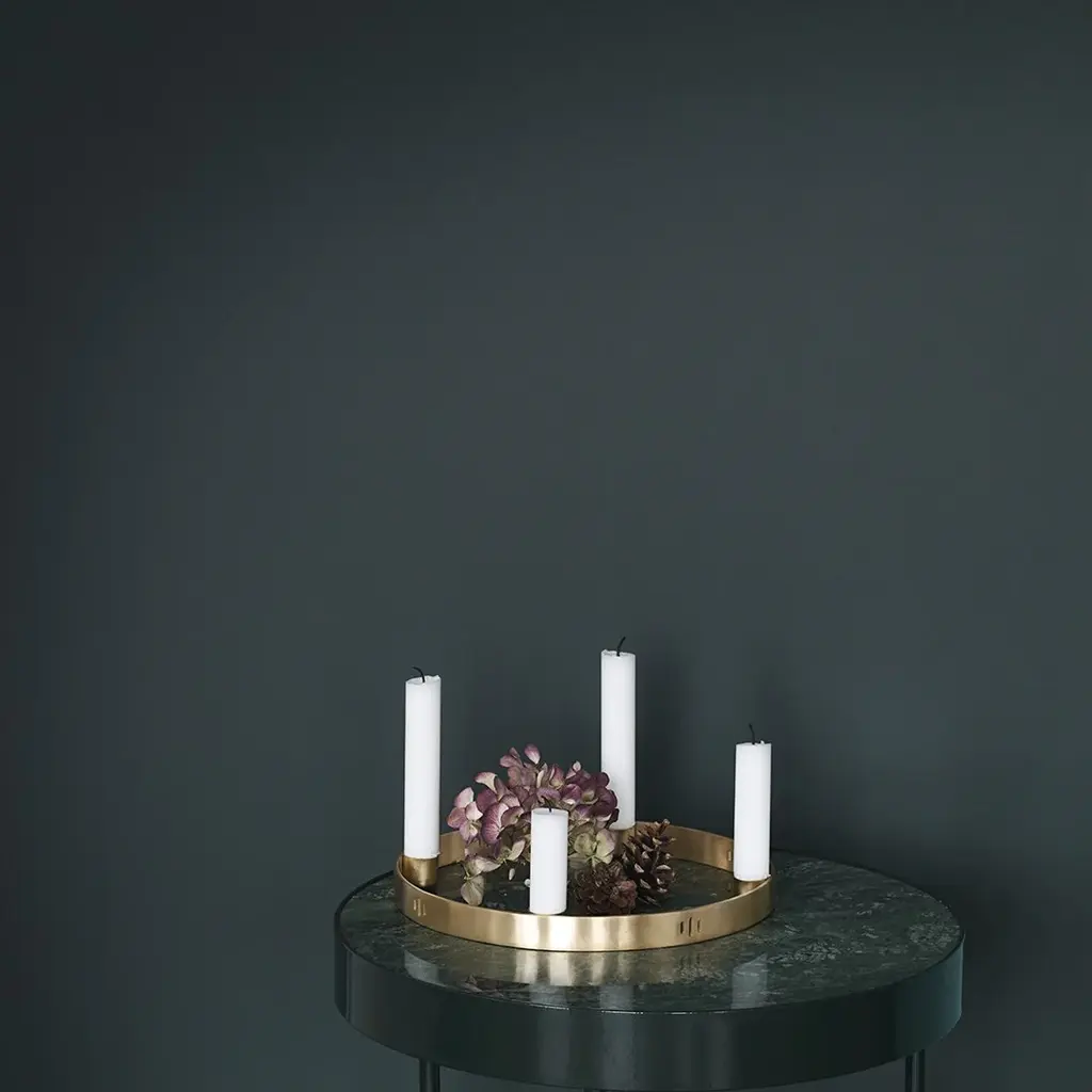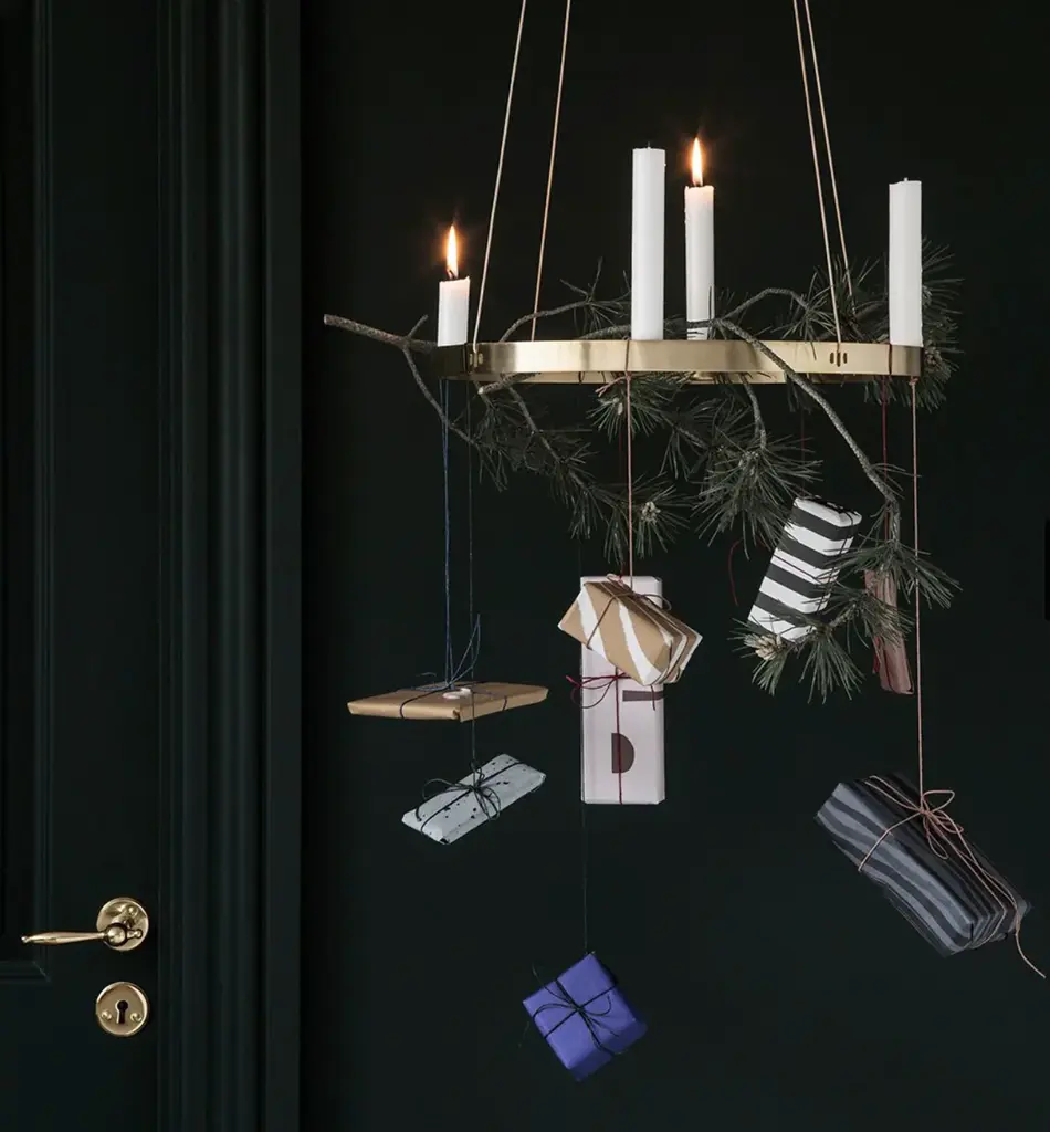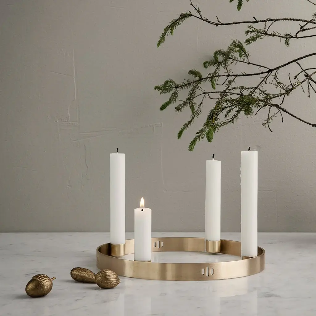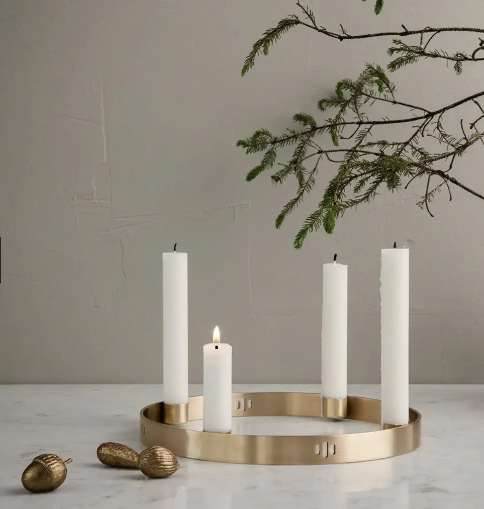 This multifunctional and minimalistic candle holder is made from all natural materials and will look beautiful whether you put it directly on a table or hang it from the ceiling in the removable leather strings. An instant classic you will use every December and throughout the year. Made in solid brass, polish when needed.