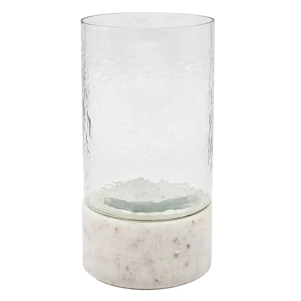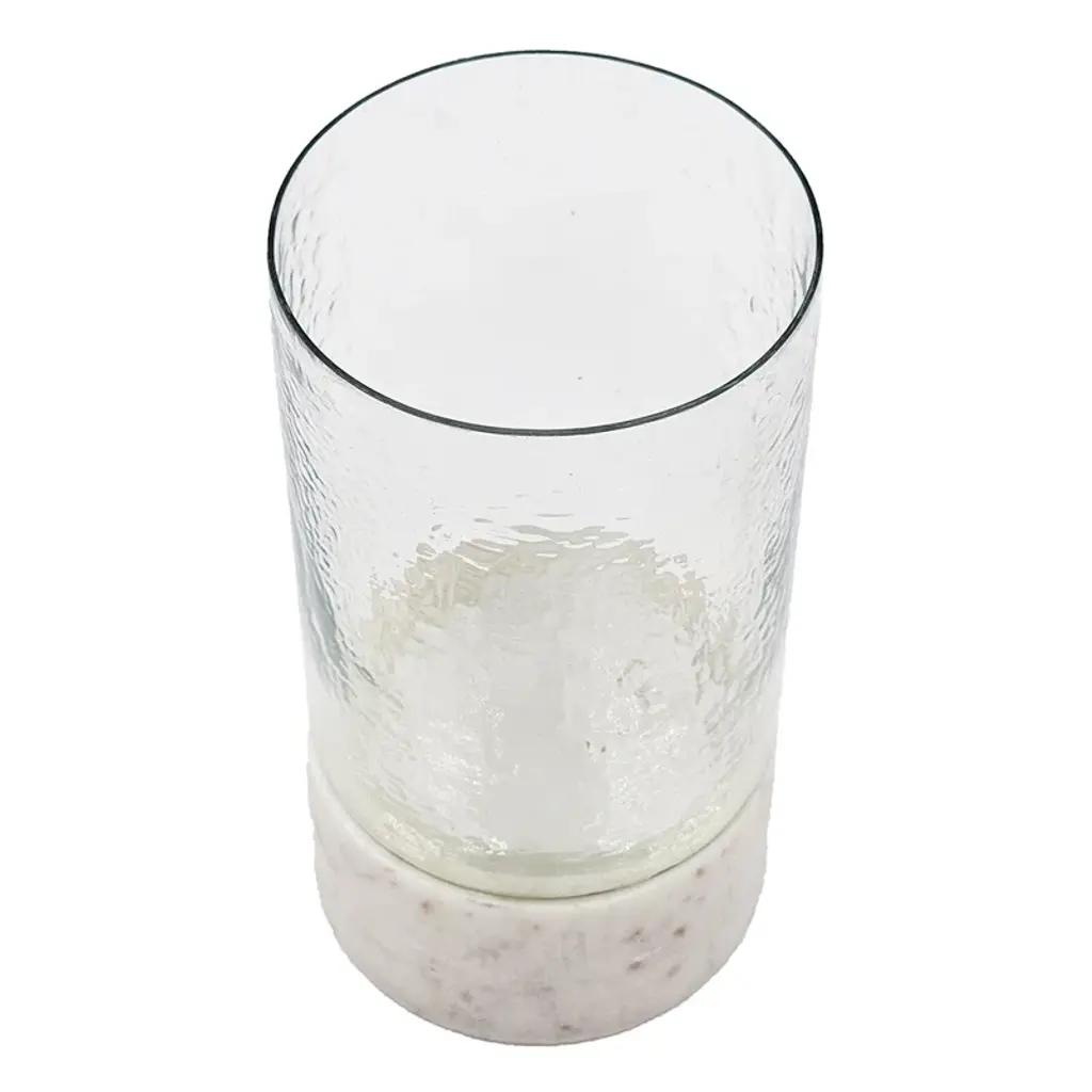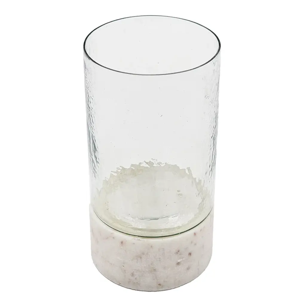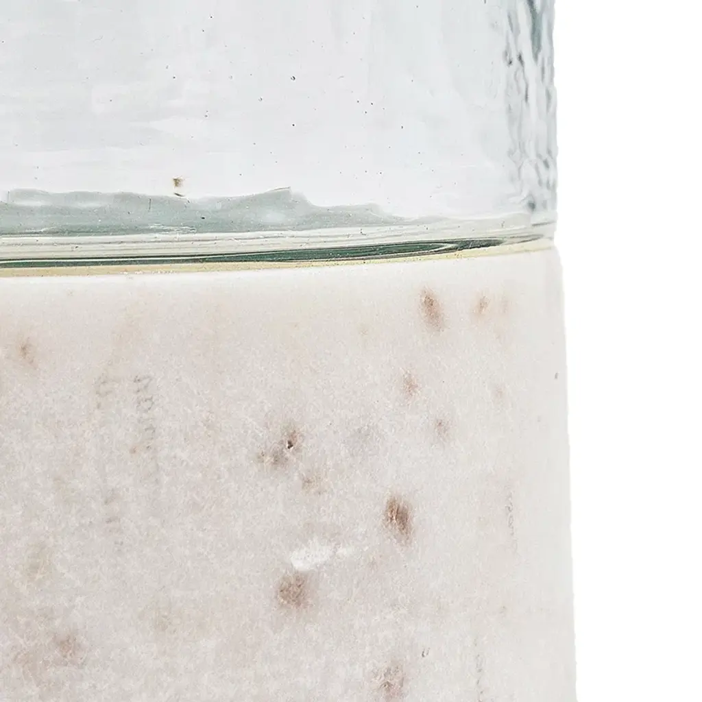 This Candle Holder Set brings a touch of coziness to your living room or bedroom. Made from a sophisticated combination of glass and stone, these candle holders set a tranquil vibe.