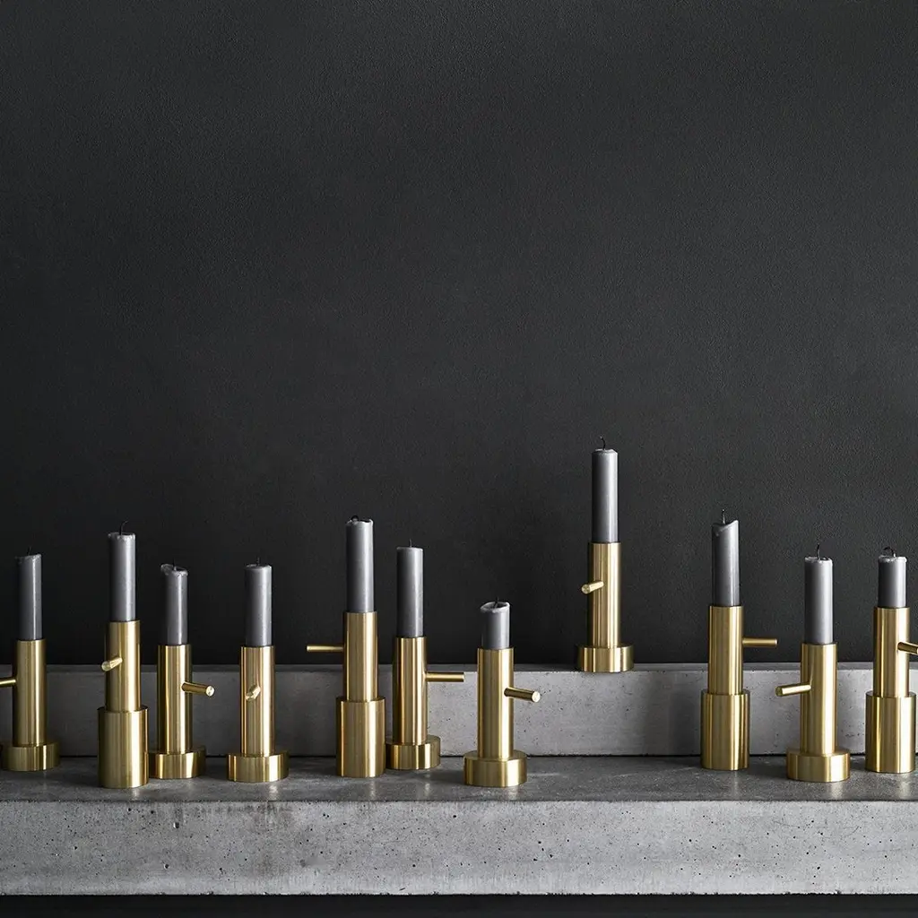 The single candleholders are made in massive brass and lacquered to make the original warm glow of brass last throughout the years.