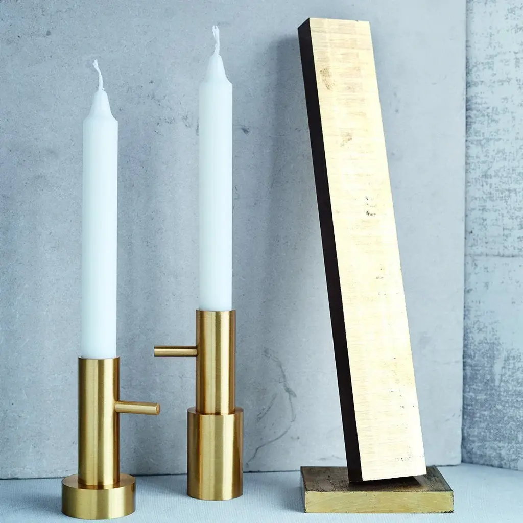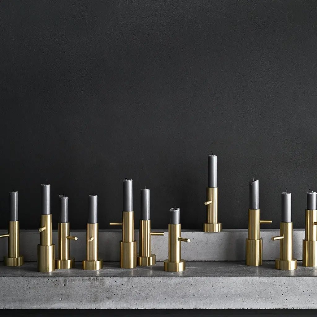 The single candleholders are made in massive brass and lacquered to make the original warm glow of brass last throughout the years.Â