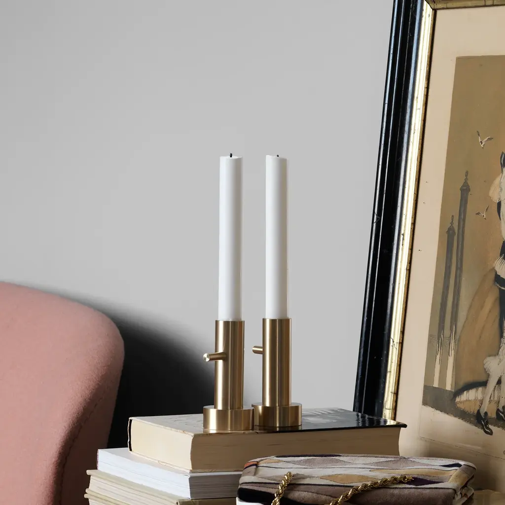 A new interpretation of the classical chamber candle holder, this design forms a display of light and warmth and a sculptural quality. Simply elegant and beautiful alone, or arranged in a group.