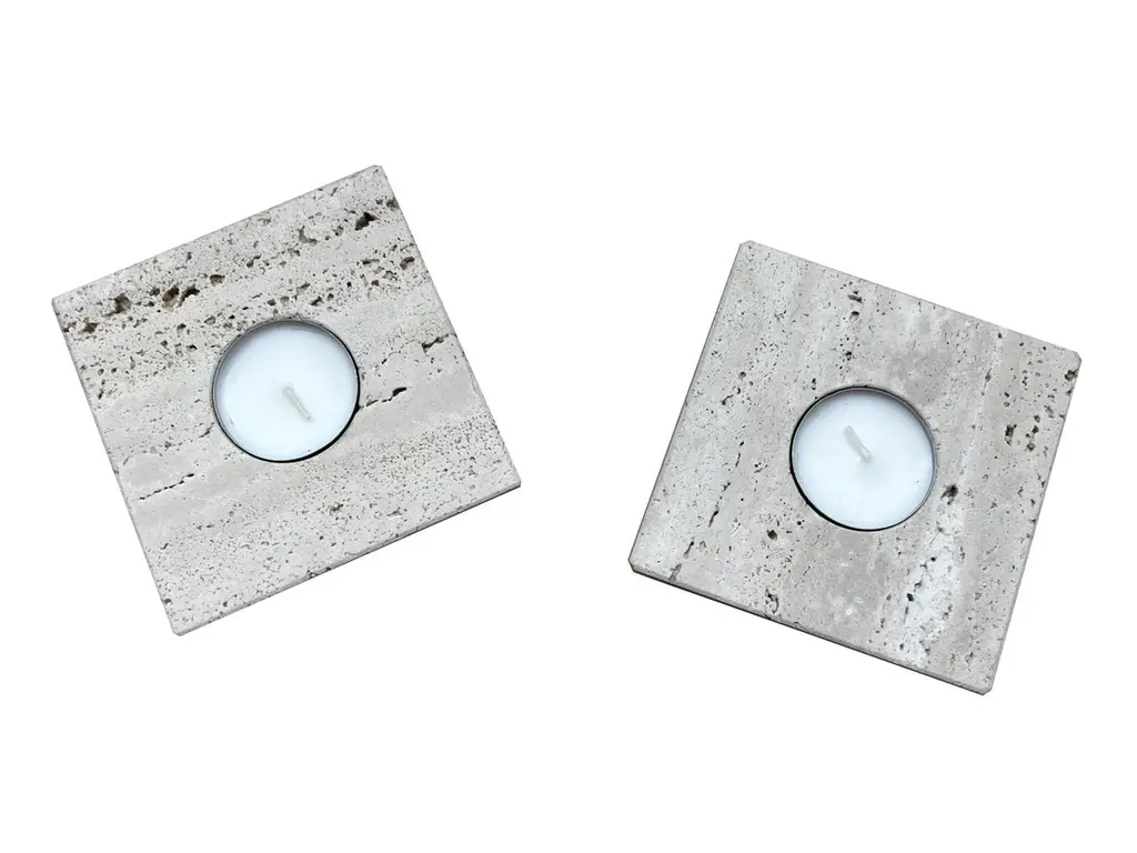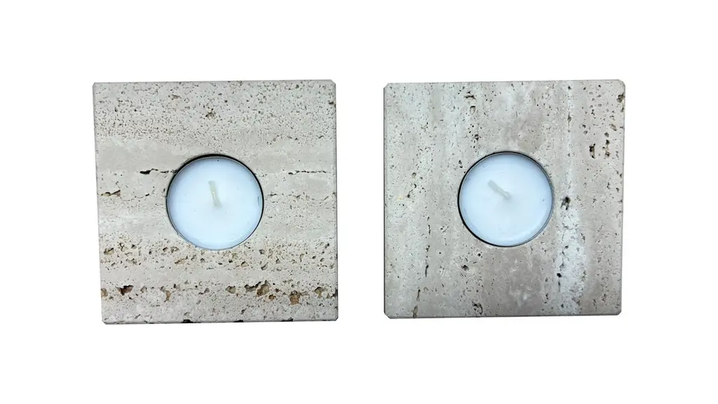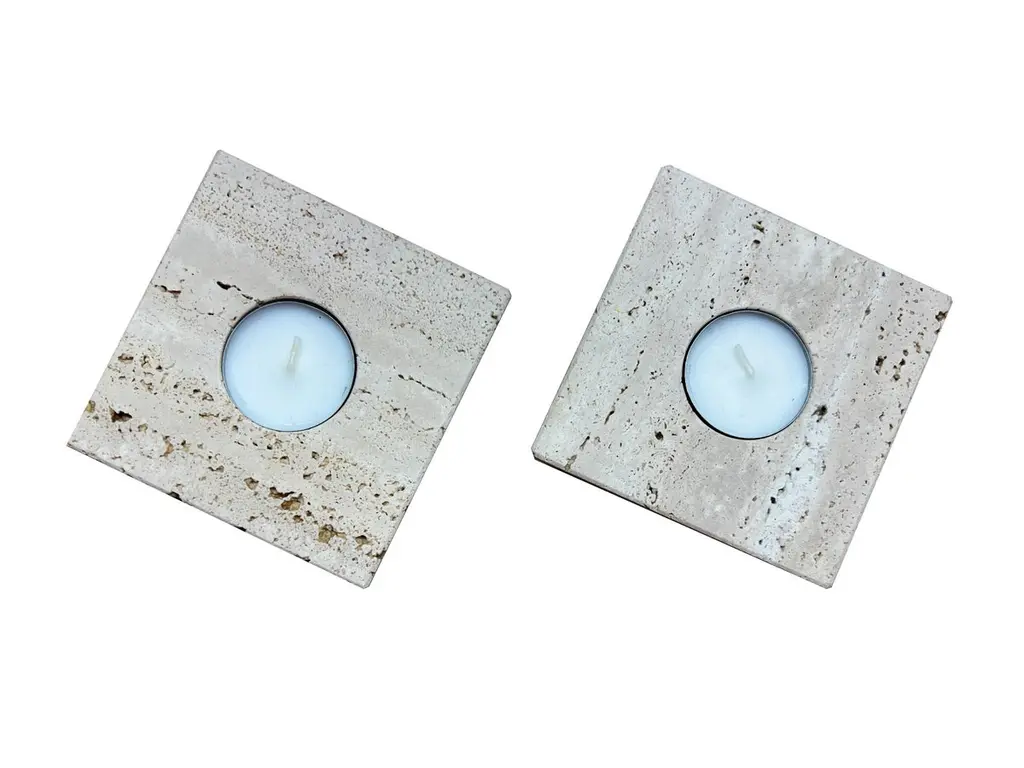 Candleholders Marble Travertine Design Set Two Candle Holders Mother’s Day Gift.Immerse yourself in timeless elegance with our travertine marble candle holders, a perfect fusion of natural beauty and refined functionality, designed to illuminate spaces with a touch of sophistication. Each set includes two candle holders meticulously crafted from exquisite travertine marble, known for its distinctive pattern of soft veins and warm tones that evoke a sense of serenity and luxury.These candle holders are more than simply decorative accessories; they are testaments to exceptional craftsmanship and refined taste. Their minimalist, contemporary design makes them versatile pieces that blend harmoniously into any setting, from modern to classic. Place them on the dining table for an intimate dinner, in the living room for a cozy atmosphere or in the bathroom for a relaxing bath with soft lighting.In addition to their undeniable aesthetic beauty, these candle holders offer unparalleled functionality. Their sturdy base provides stability while securely holding candles, adding a soft luminescence that transforms any space into a sanctuary of tranquility. Whether for a special occasion or simply to express your appreciation for a mother's unconditional love, these travertine marble candle holders are the perfect gift that will last through time, just like a mother's love.Each set comes exquisitely packaged in an elegant gift box, ready to be delivered with love and gratitude on Mother's Day. Celebrate the unique bond between mother and child with a gift that exudes beauty, grace and everlasting love. Perfect Gift for Mother's Day. Also Perfect Gift for Design Lover's Day
