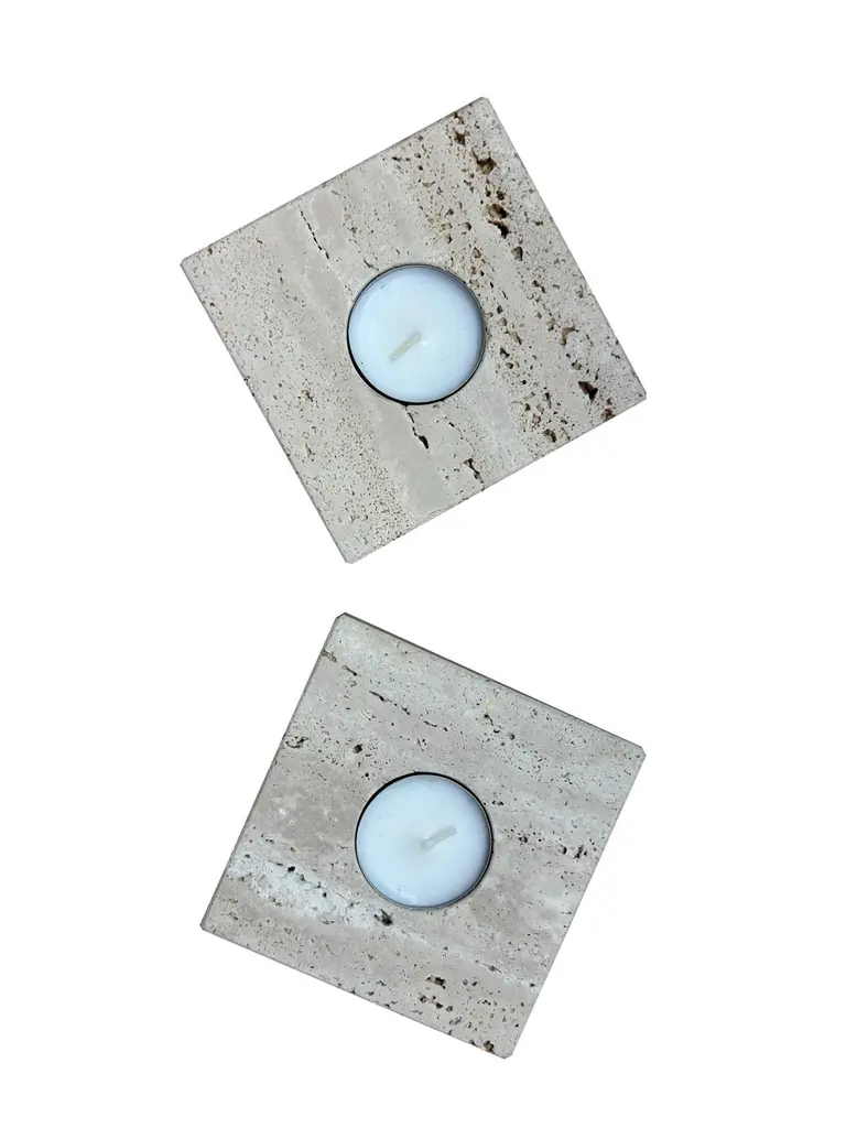 Candleholders Marble Travertine Design Set Two Candle Holders Mother’s Day Gift