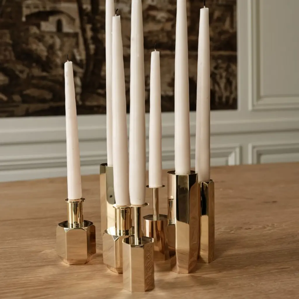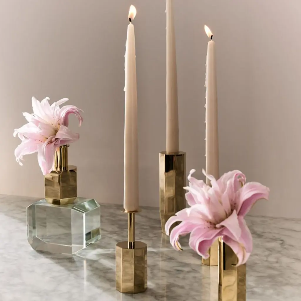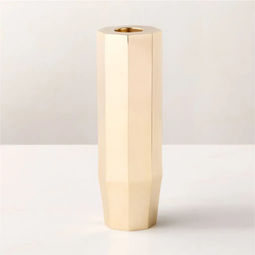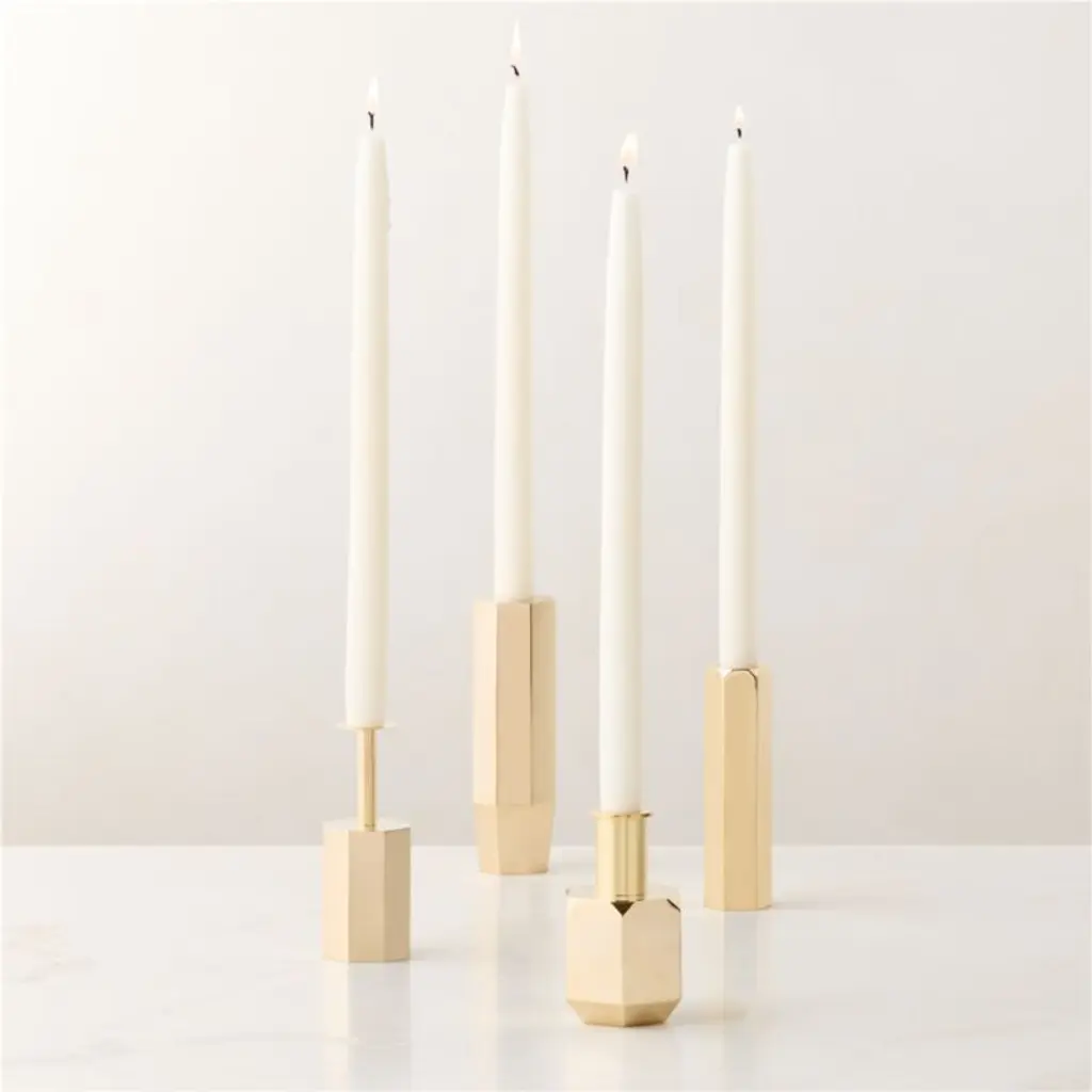 Inspired by modern Parisian interiors, polished brass taper holder designed by goop captures a softened industrial look through sculptural details. The distinctive form is cast in solid brass and polished to a high shine for a feminine touch. The brass is unlacquered, offering a living finish that will develop the patina of a vintage find. Designed in four different heights, the weighty taper holder is best when grouped in multiples on a table or mantel to add height. CB2 exclusive.