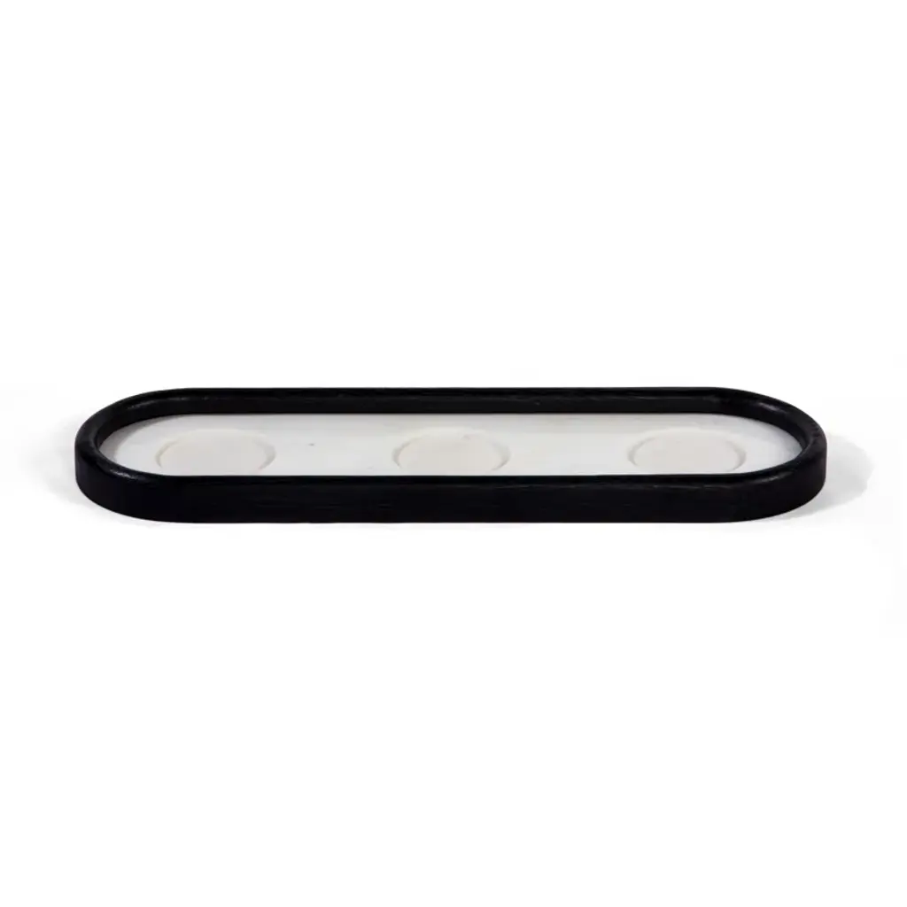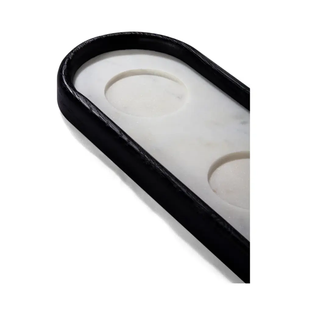 The Ceylon candle holder combines soft modern detailing with warm, contrasting materials. Solid FSC-certified Oak with a profiled edge frames a solid marble tray with carved recesses, perfect for displaying your favorite candles.