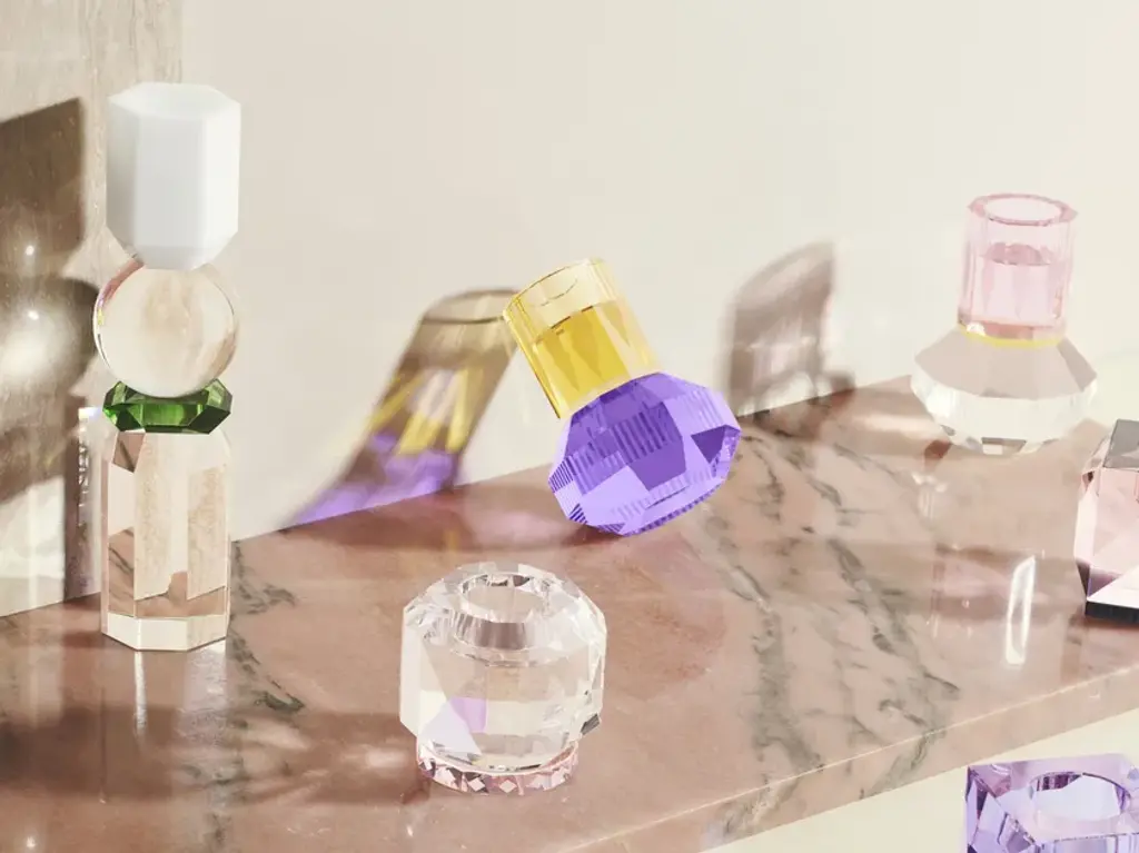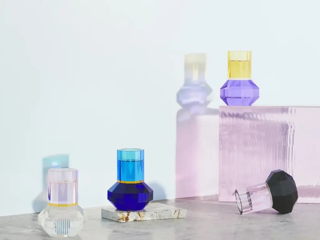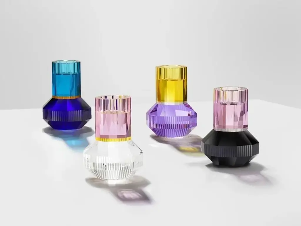 The Reflections Copenhagen CHICAGO YELLOW/CLEAR/PURPLE crystal tealight holder is an artistic statuette in majestic form and elegant detailing. The yellow and purple colour combination has a raw yet feminine flair, a combination which allows the crystal’s surroundings to decide how it accentuates. An artisanal design object with mesmerizing geometric shapes, that will cast reflections throughout the interior.